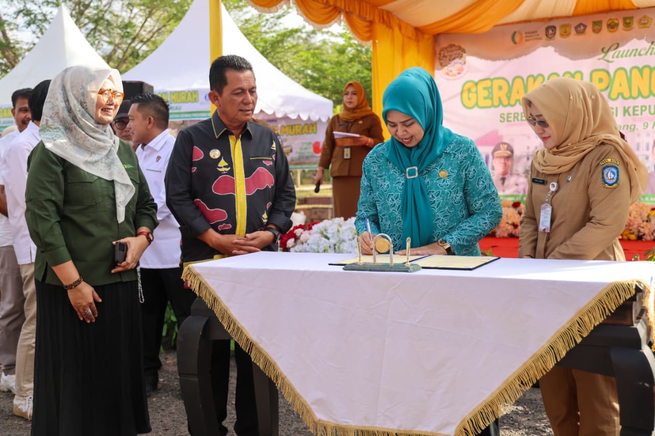 Peluncuran GPM ditandai dengan Penandatanganan Komitmen Bersama dalam rangka peningkatan produksi serta stabilisasi pasokan dan harga pangan di Kepulauan Riau oleh para pemangku kepentingan. (Harun/DISKOMINFO KEPRI)