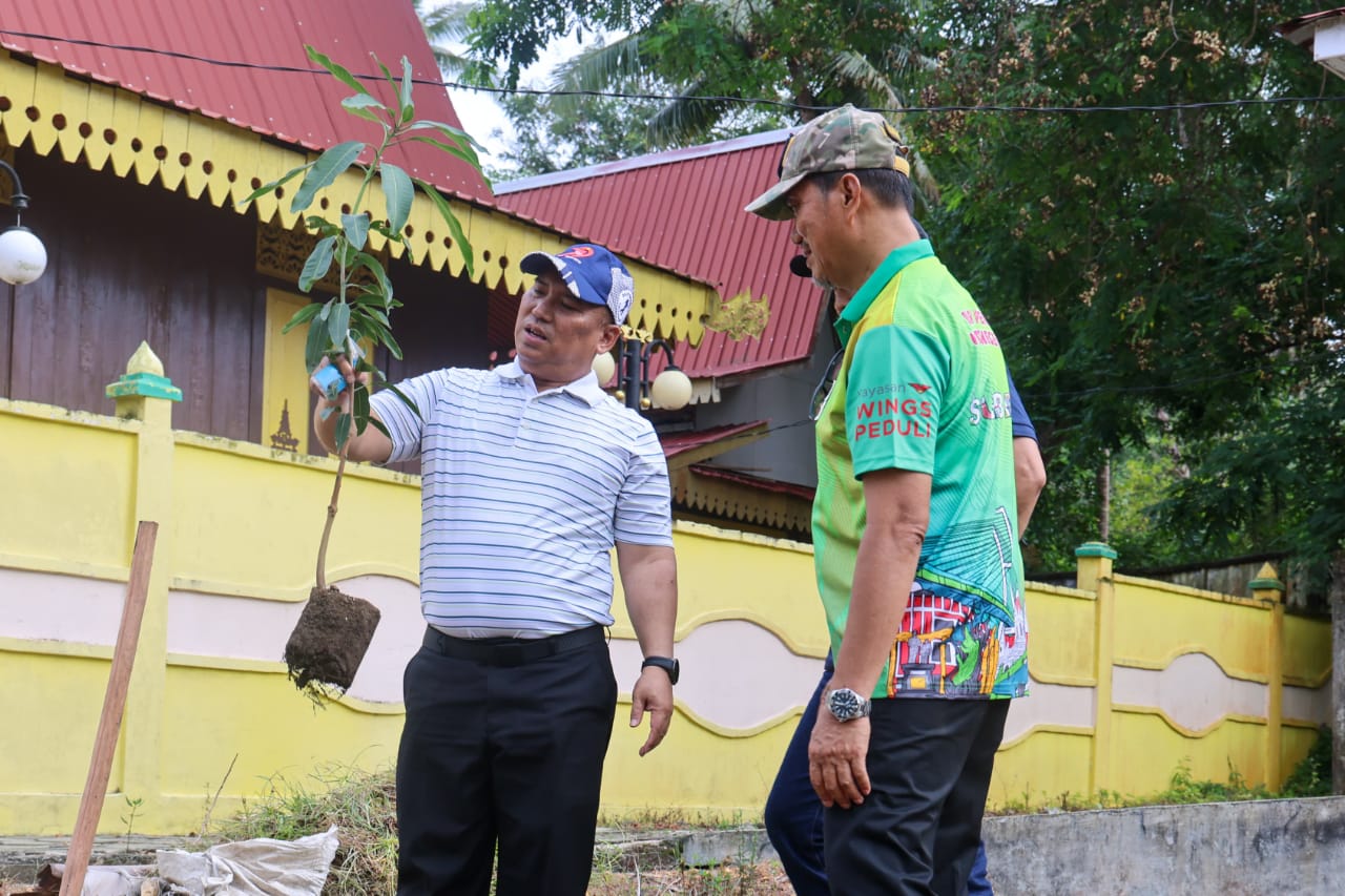 Wagub Nyanyang memperhatikan bibit pohon mangga yang akan di tanam di sepanjang jalan Pulau Penyengat. (Enji/Diskominfo Kepri)