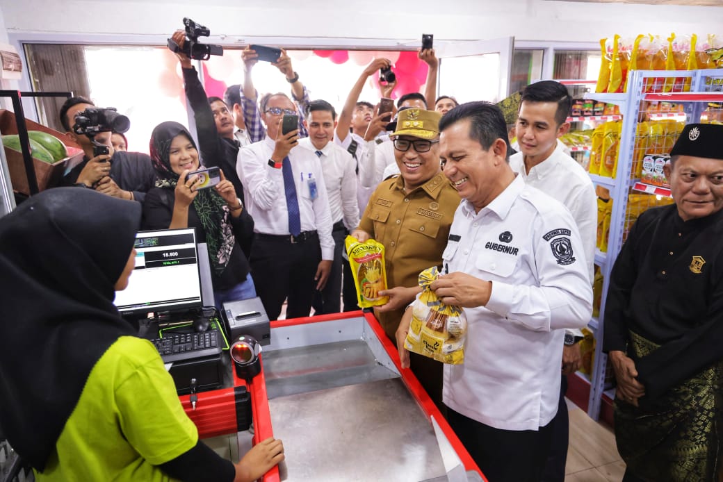 Gubernur Ansar dan Wakil Gubernur Nyanyang berbelanja di gerai sembako dikelola Kopdes Merah Putih Kuala Sempang. (Ogi/Diskominfo Kepri)