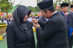 Pada kesempatan ini, Gubernur Kepri Ansar Ahmad bersama Kakanwil Kemenag Kepri Dr. H. Zoztafia, S.Ag., M.Pd.I. menyematkan penganugerahan tanda mata kehormatan Satyalancana Karya Satya 10, 20, dan 30 tahun kepada ASN di lingkungan Kemenag Kepri.