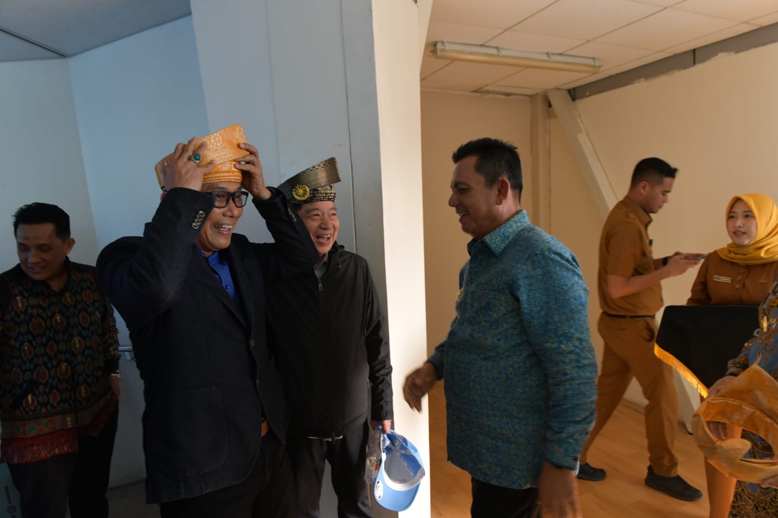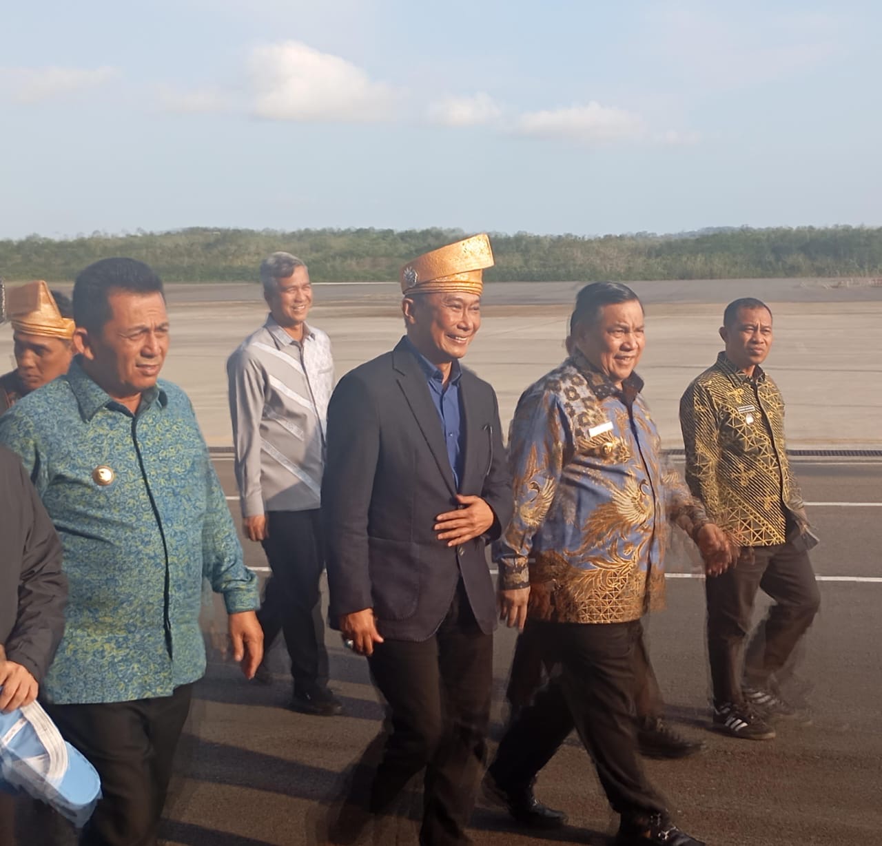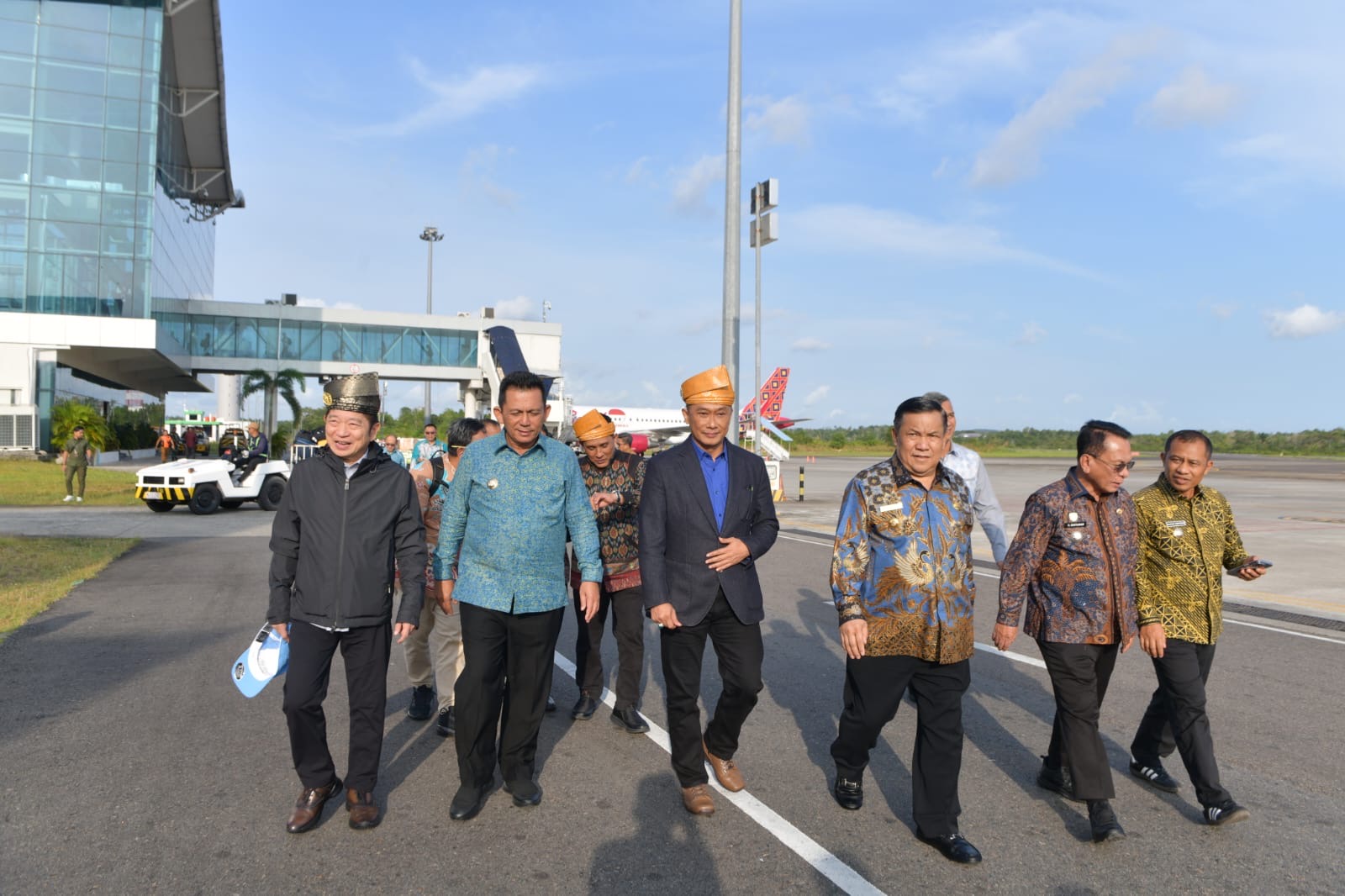 Setibanya di Bandara RHF, Kepala BKN RI disambut langsung oleh Gubernur Ansar Ahmad dengan pemasangan tanjak sebagai bentuk penghormatan dan adat penyambutan tamu kehormatan dalam budaya Melayu di Bumi Segantang Lada.