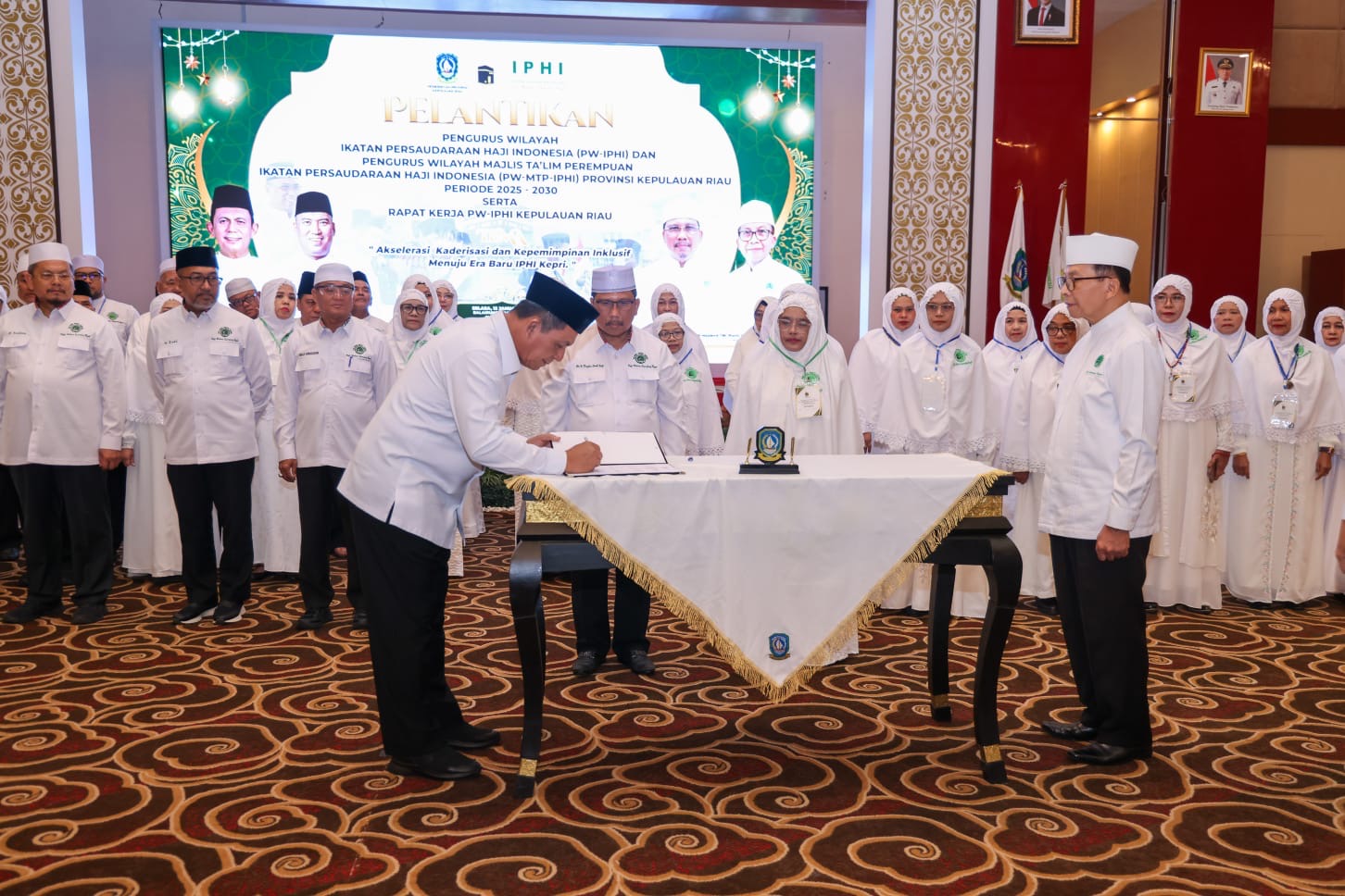 DISKOMINFO KEPRI - Gubernur Kepulauan Riau melantik Pengurus Wilayah Ikatan Persaudaraan Haji Indonesia (PW-IPHI) dan Pengurus Wilayah Majelis Ta’lim Perempuan Ikatan Persaudaraan Haji Indonesia (PW MTP-IPHI) Provinsi Kepulauan Riau masa bakti 2025–2030. Pelantikan berlangsung khidmat di Aula Wan Seri Beni, Kantor Gubernur Provinsi Kepulauan Riau, Dompak, Tanjungpinang, Selasa (13/1).