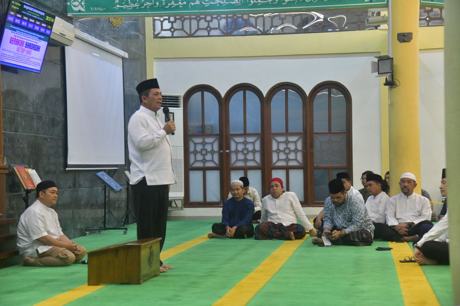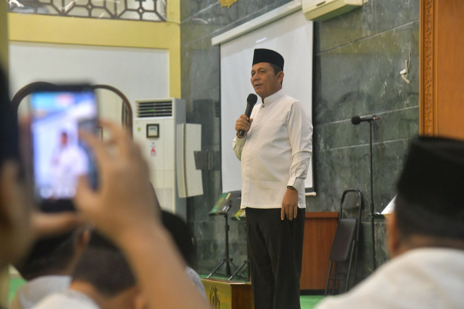 DISKOMINFO KEPRI – Gubernur Kepulauan Riau Ansar Ahmad menghadiri Tausiyah Peringatan Isra Mi’raj Nabi Muhammad SAW yang berlangsung khidmat di Masjid Bukit Indah Sukajadi, Batam, Sabtu (17/1). Kegiatan ini menjadi momentum refleksi spiritual sekaligus penguatan nilai-nilai keimanan dan kepedulian sosial di tengah masyarakat.