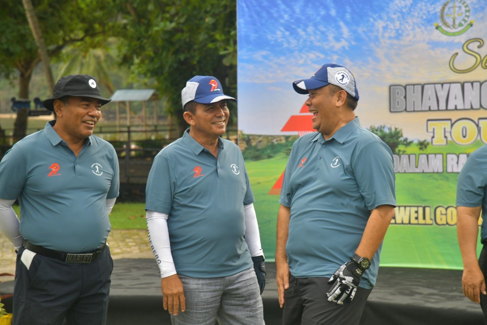 DISKOMINFO KEPRI – Gubernur Kepulauan Riau H. Ansar Ahmad bersama Wakil Gubernur Nyanyang Haris Pratamura menghadiri Bhayangkara Golf Charity Tournament 2025 yang digelar oleh Polda Kepulauan Riau di Palm Springs Golf & Country Club, Batam, Sabtu (5/7). Kegiatan ini merupakan rangkaian dalam memperingati Hari Ulang Tahun Bhayangkara ke-79.