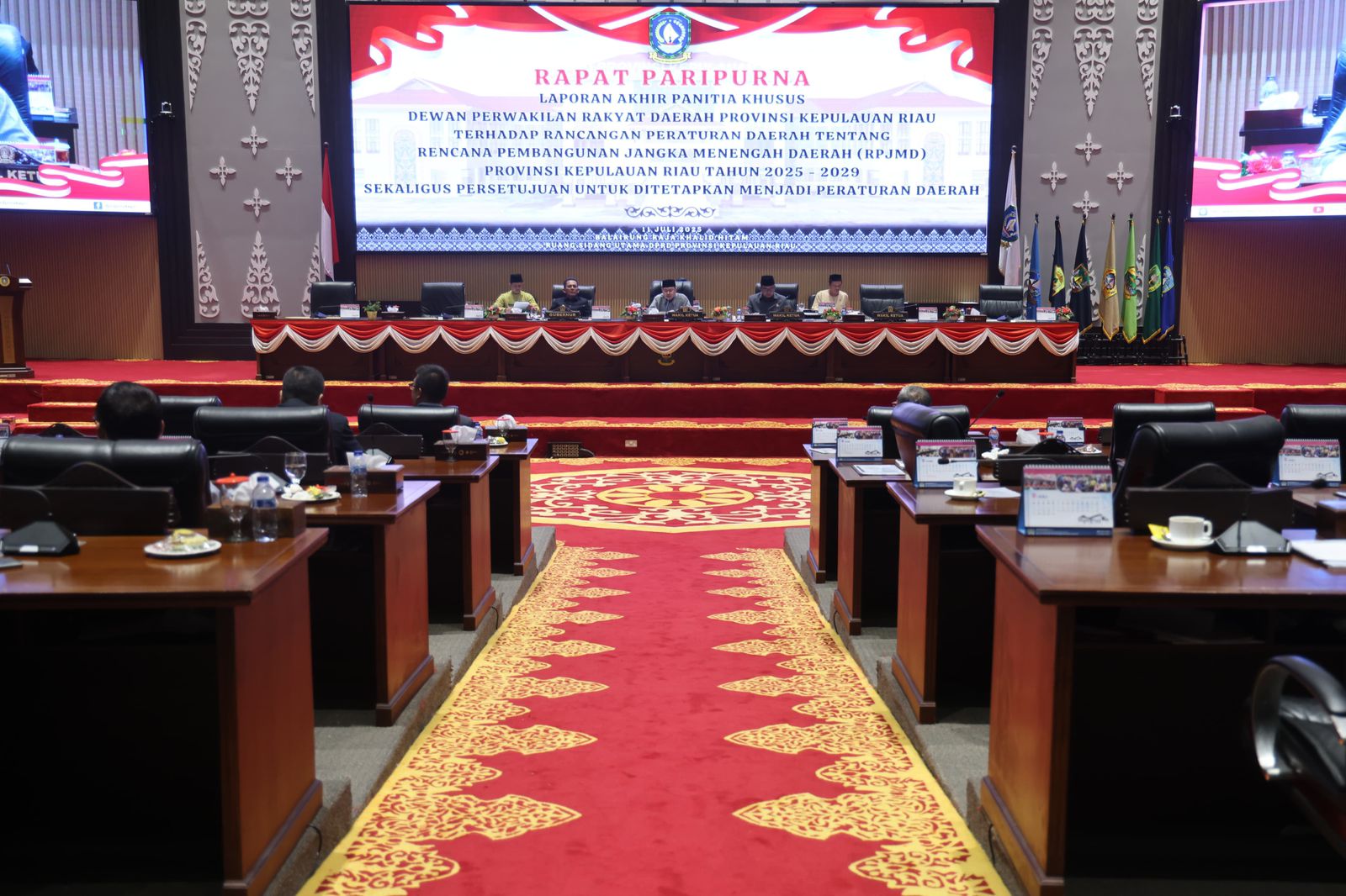 DISKOMINFO KEPRI - Dewan Perwakilan Rakyat Daerah (DPRD) Provinsi Kepulauan Riau secara resmi menetapkan Peraturan Daerah tentang Rencana Pembangunan Jangka Menengah Daerah (RPJMD) Provinsi Kepulauan Riau Tahun 2025–2029 dalam Rapat Paripurna yang digelar di Gedung DPRD Kepri, Tanjungpinang, Jum'at (11/7).