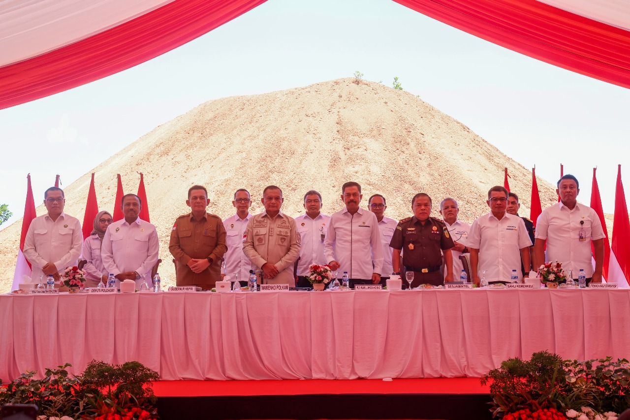 DISKOMINFO KEPRI - Pemerintah Republik Indonesia melalui Kementerian Koordinator Bidang Politik, Hukum, dan Keamanan (Kemenko Polhukam) resmi memulai program pemanfaatan sisa stockpile bijih bauksit di Provinsi Kepulauan Riau bertempat di Tanjung Moco, Dompak, Kota Tanjungpinang, Senin (28/7).