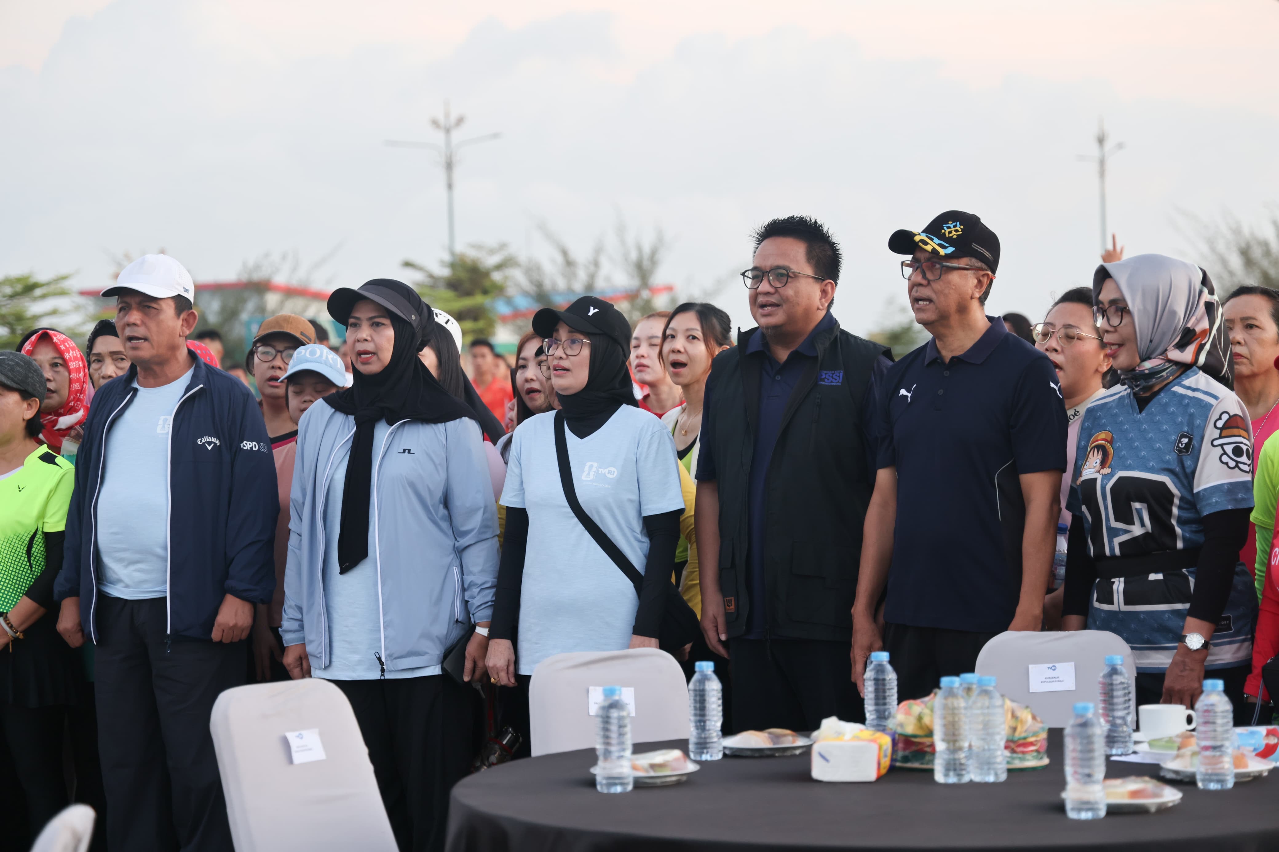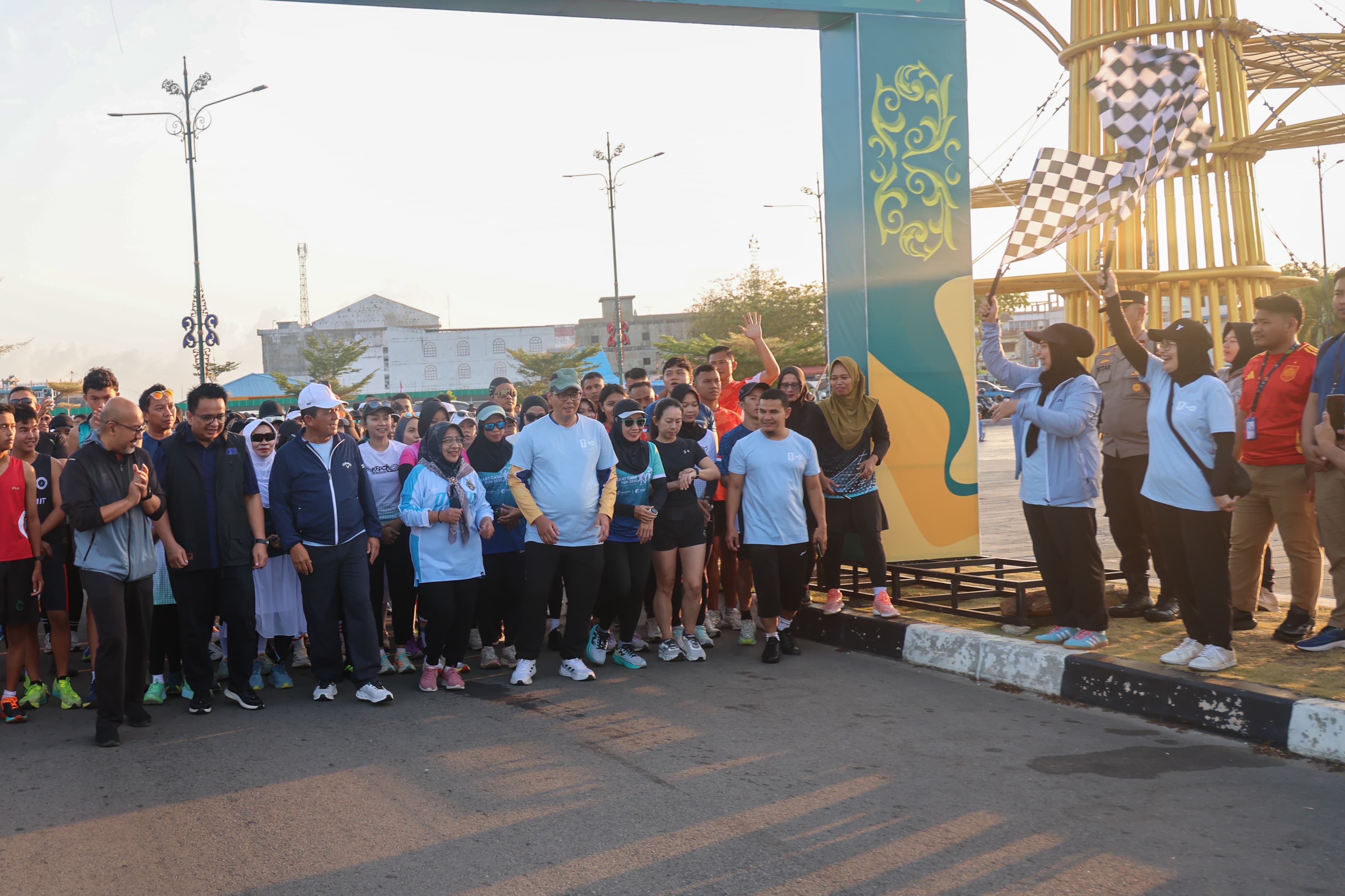 Gubernur Ansar Ahmad bersama Ketua TP-PKK Provinsi Kepulauan Riau Hj. Dewi Kumalasari Ansar dan Kepala TVRI Stasiun Kepulauan Riau Yenni Marlinda turut ambil bagian dalam kegiatan Run 5 K bersama masyarakat.