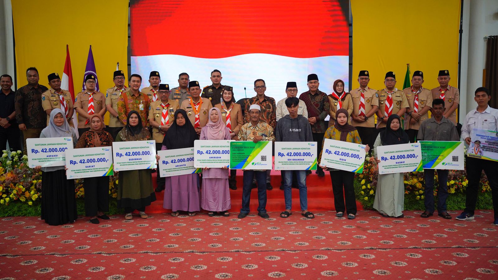 DISKOMINFO KEPRI – Di sela-sela pelantikan Ketua Mabicab dan Ketua Kwarcab Gerakan Pramuka Natuna masa bakti 2025–2030, di Gedung Serbaguna Sri Srindit, Ranai, Minggu (10/8), Gubernur Kepulauan Riau H. Ansar Ahmad bersama Kepala Kantor BPJS Ketenagakerjaan Cabang Tanjungpinang, Iwan Kurniawan, menyerahkan santunan kematian bagi ahli waris petani dan nelayan penerima bantuan BPJS Ketenagakerjaan di Kabupaten Natuna.