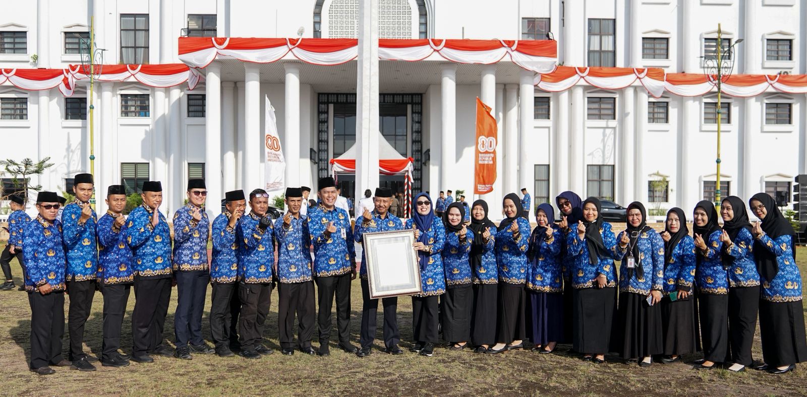 DISKOMINFO KEPRI - Sekretaris Daerah Provinsi Kepulauan Riau Adi Prihantara memimpin secara langsung upacara Peringatan Hari Ulang Tahun (HUT) ke 80 Republik Indonesia di lingkungan Pemerintah Provinsi Kepri di halaman Kantor Gubernur Kepri Dompak, Minggu (17/8).