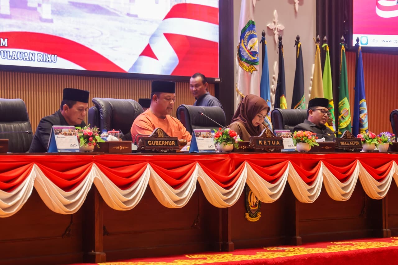 DISKOMINFO KEPRI- Gubernur Kepulauan Riau H. Ansar Ahmad menyampaikan Nota Keuangan dan Rancangan Peraturan Daerah tentang Perubahan Anggaran Pendapatan dan Belanja Daerah (APBD) Tahun Anggaran 2025 pada Rapat Paripurna yang digelar di Ruang Sidang Utama DPRD Provinsi Kepri, Tanjungpinang, Jumat (22/8). Rapat Paripurna tersebut dipimpin langsung oleh Ketua DPRD Kepri, Iman Sutiawan, serta dihadiri para Wakil Ketua dan anggota DPRD Kepri.
