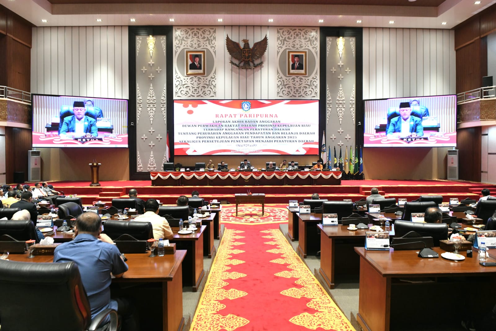 DISKOMINFO KEPRI – Dewan Perwakilan Rakyat Daerah Provinsi Kepulauan Riau menggelar Rapat Paripurna dengan agenda Pendapat Akhir Fraksi-Fraksi terhadap Nota Keuangan dan Rancangan Peraturan Daerah tentang Perubahan Anggaran Pendapatan dan Belanja Daerah (APBD) Provinsi Kepri Tahun Anggaran 2025, Senin (25/8).