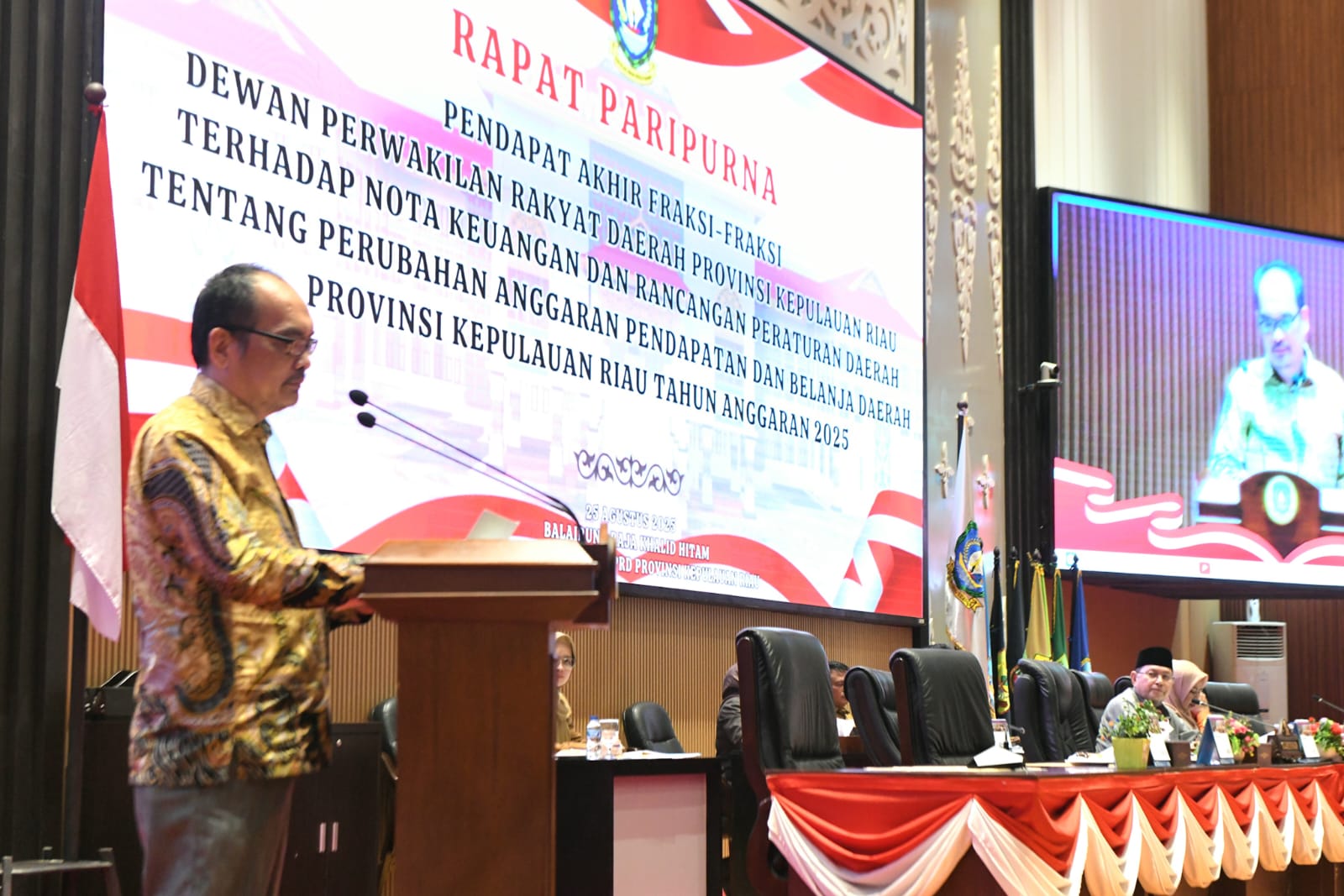 Gubernur Kepulauan Riau, H. Ansar Ahmad, yang hadir dalam sidang paripurna tersebut menyampaikan apresiasi atas dukungan seluruh fraksi DPRD Kepri terhadap Perubahan APBD 2025.