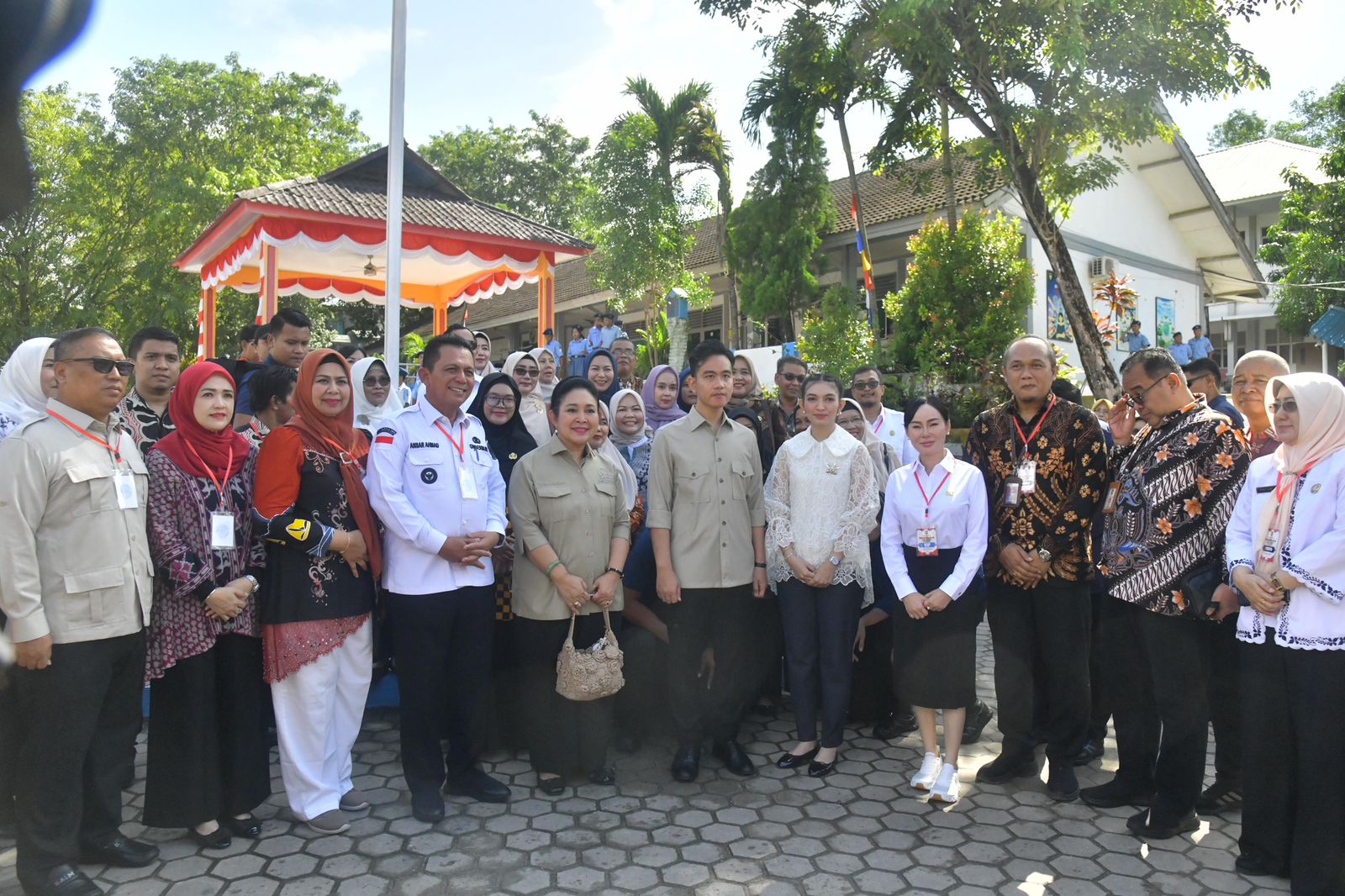 Wapres Gibran bersama istrinya juga berkesempatan menyapa para siswa yang tengah bersiap menyantap hidangan bergizi. Anak-anak pun dengan penuh antusias menyampaikan rasa terima kasih mereka.