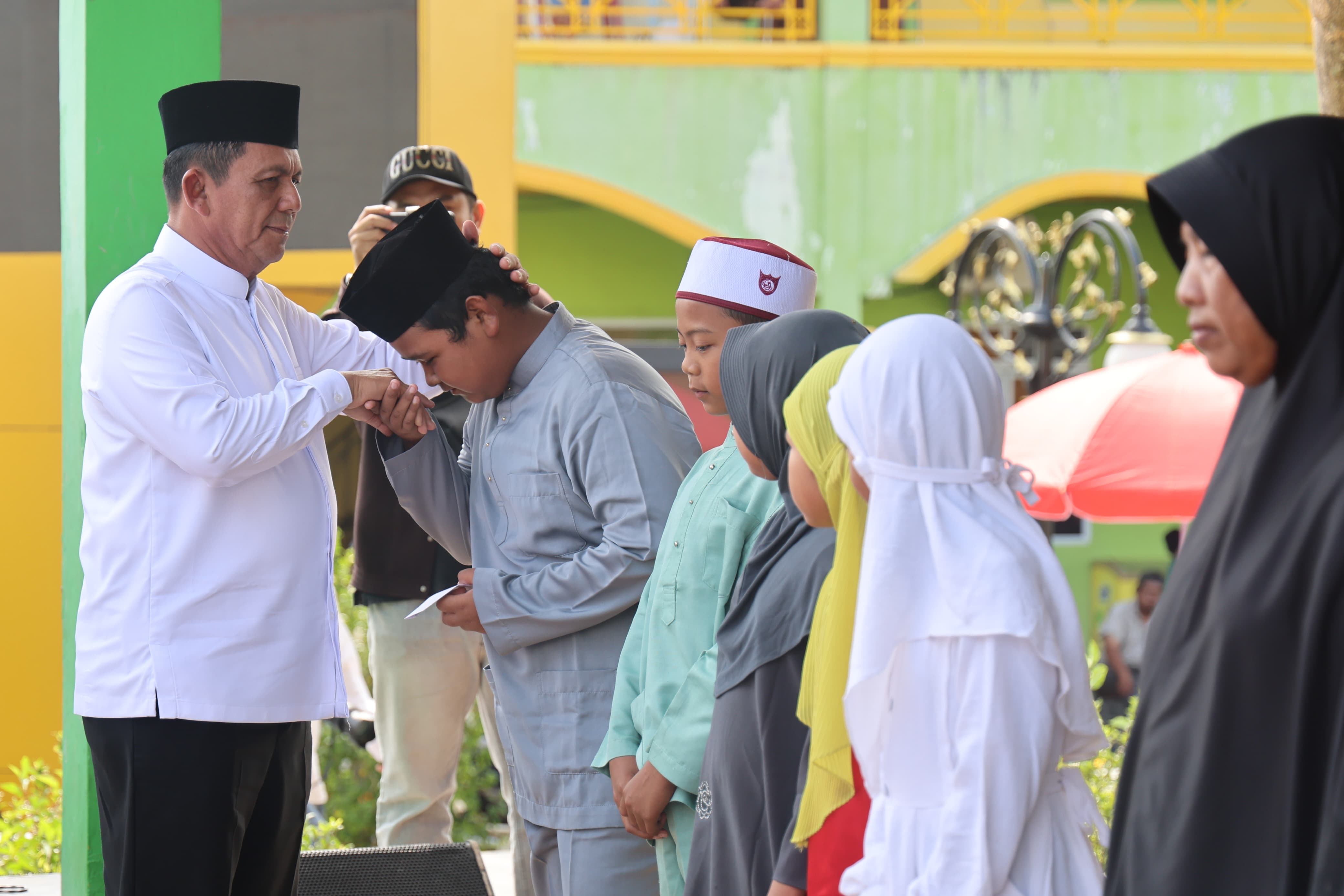 Pada kesempatan tersebut, Pemerintah Provinsi Kepulauan Riau menyerahkan 150 paket sembako dan tali asih kepada anak yatim-piatu serta lansia, yang diserahkan langsung oleh Gubernur Ansar dan Wagub Nyanyang.