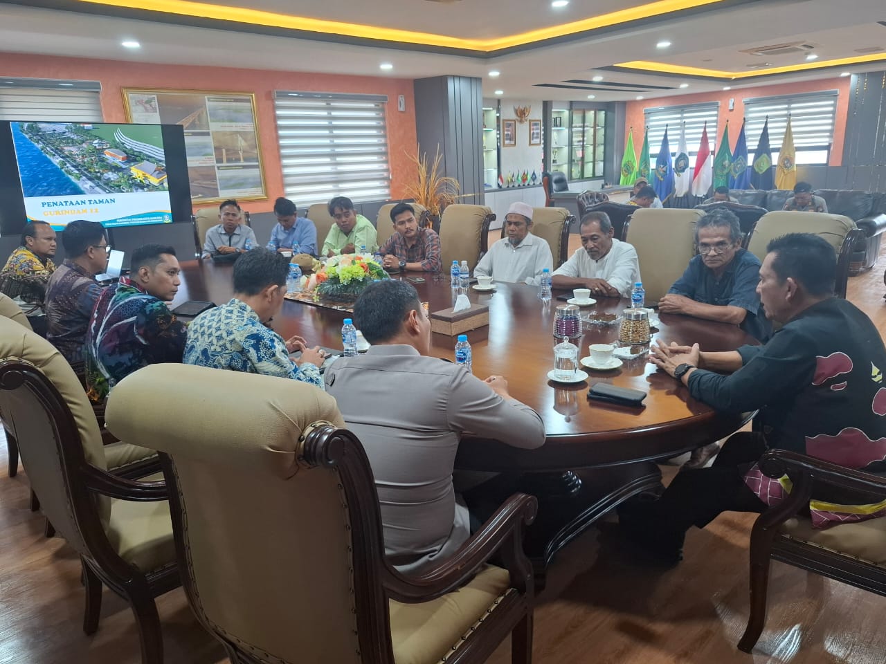 DISKOMINFO KEPRI – Gubernur Kepulauan Riau H. Ansar Ahmad menerima audiensi para pedagang Gurindam Dua Belas di ruang kerjanya, Kamis (2/10). Pertemuan ini digelar untuk menyamakan persepsi terkait rencana penataan kawasan Gurindam Dua Belas yang tengah dilakukan Pemerintah Provinsi Kepri.