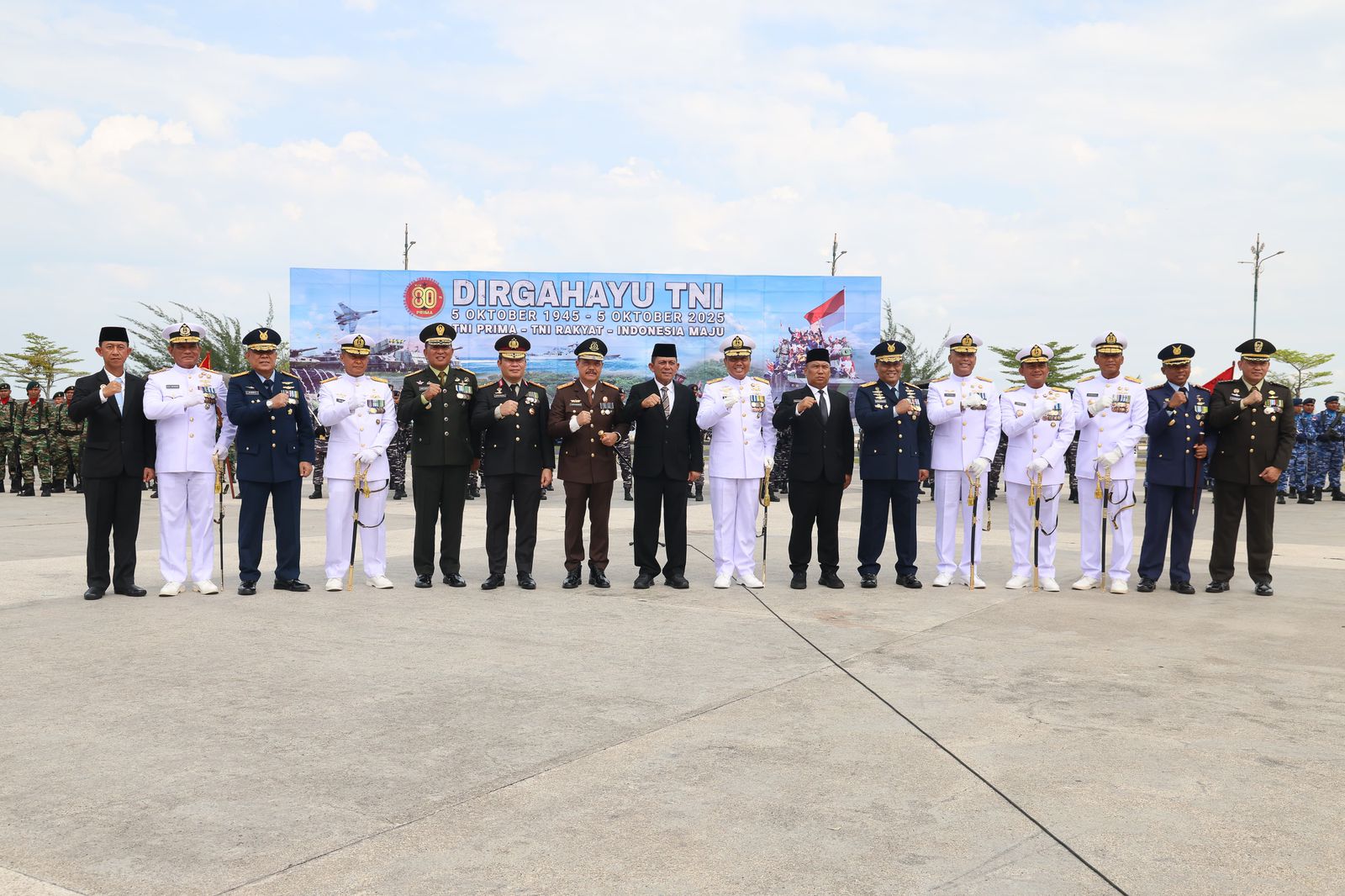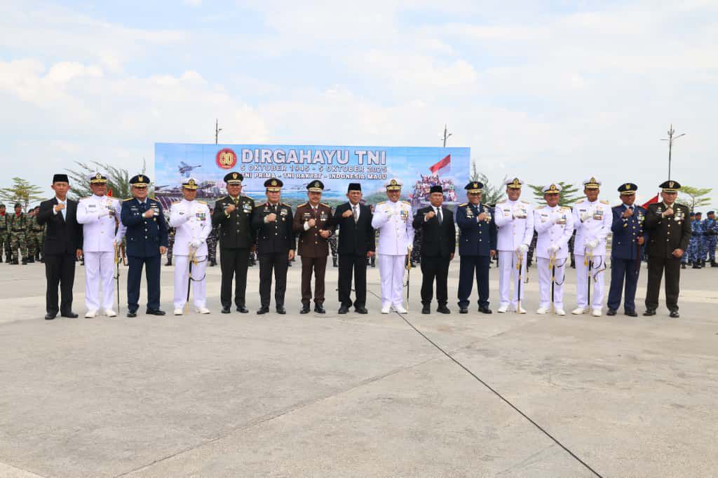 DISKOMINFO KEPRI – Gubernur Provinsi Kepulauan Riau H. Ansar Ahmad menghadiri upacara peringatan Hari Ulang Tahun ke-80 Tentara Nasional Indonesia (TNI) yang digelar di Laman Gurindam XII, Tugu Sirih, Tanjungpinang, Minggu (5/10).