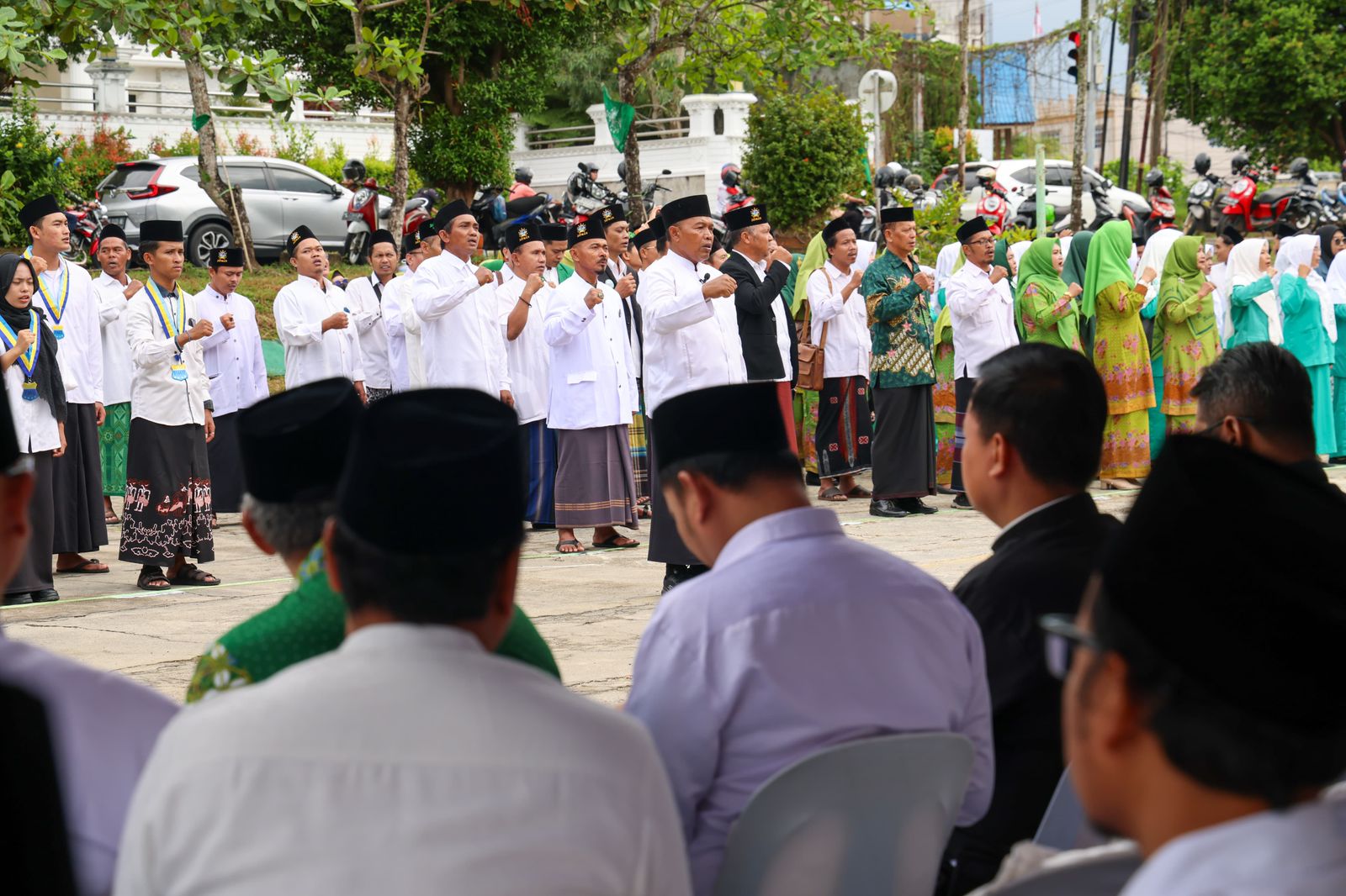 Dalam amanatnya, Wakil Gubernur juga menyampaikan belasungkawa mendalam atas wafatnya 67 santri dalam musibah yang menimpa Pesantren Al-Khoziny, Sidoarjo, Jawa Timur.