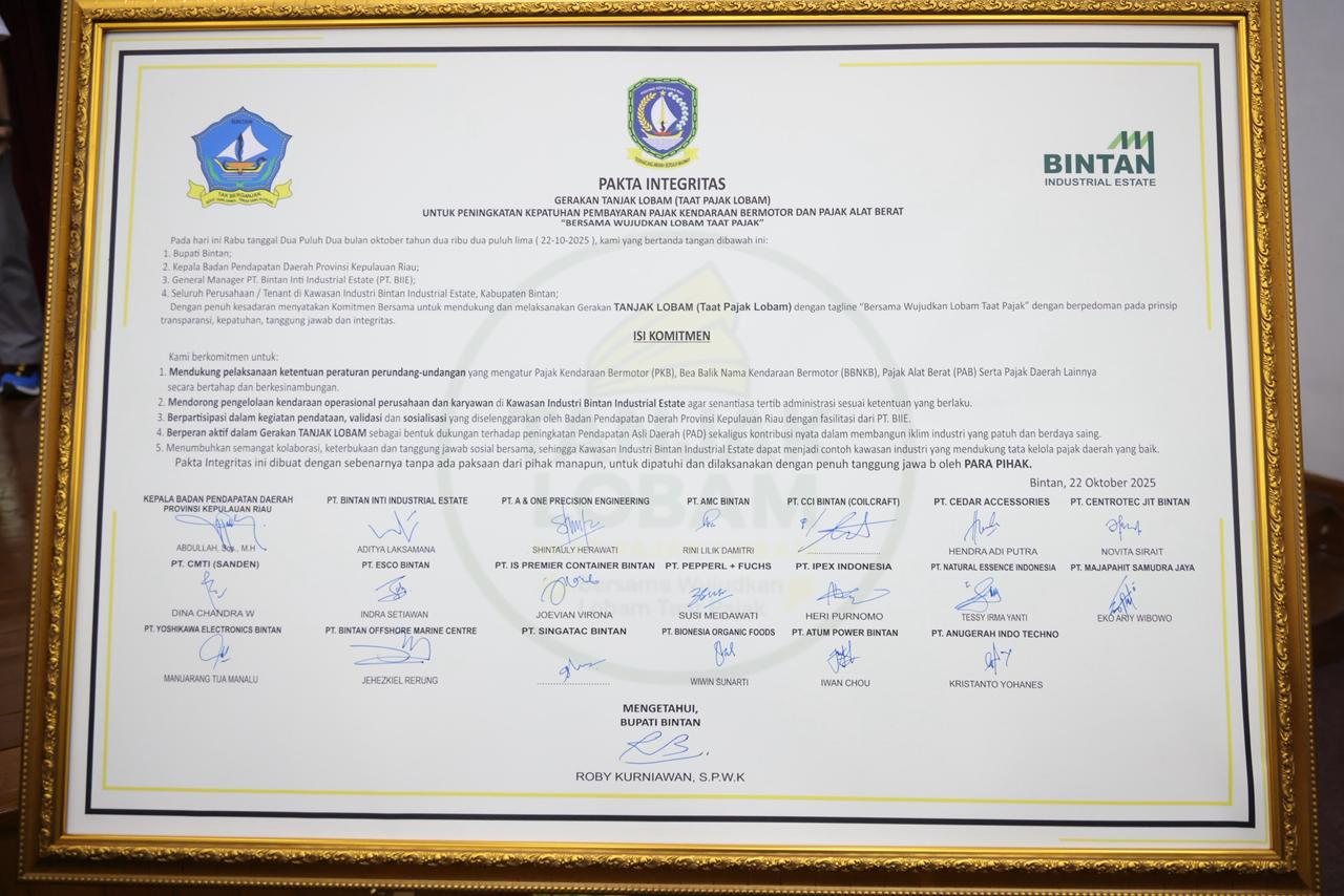 “Gerakan ini bertujuan untuk mengoptimalkan sinergi data dan pelayanan pajak daerah, mendorong kepatuhan dan ketertiban di lingkungan kawasan industri, serta menjadikan Kawasan Industri Lobam sebagai model percontohan kawasan taat pajak di Kepri,” jelas Abdullah.