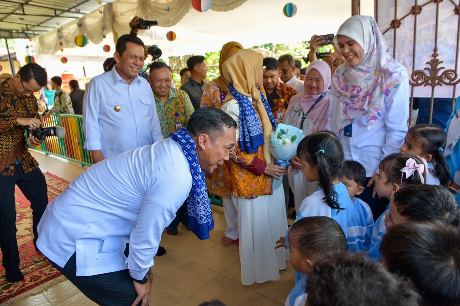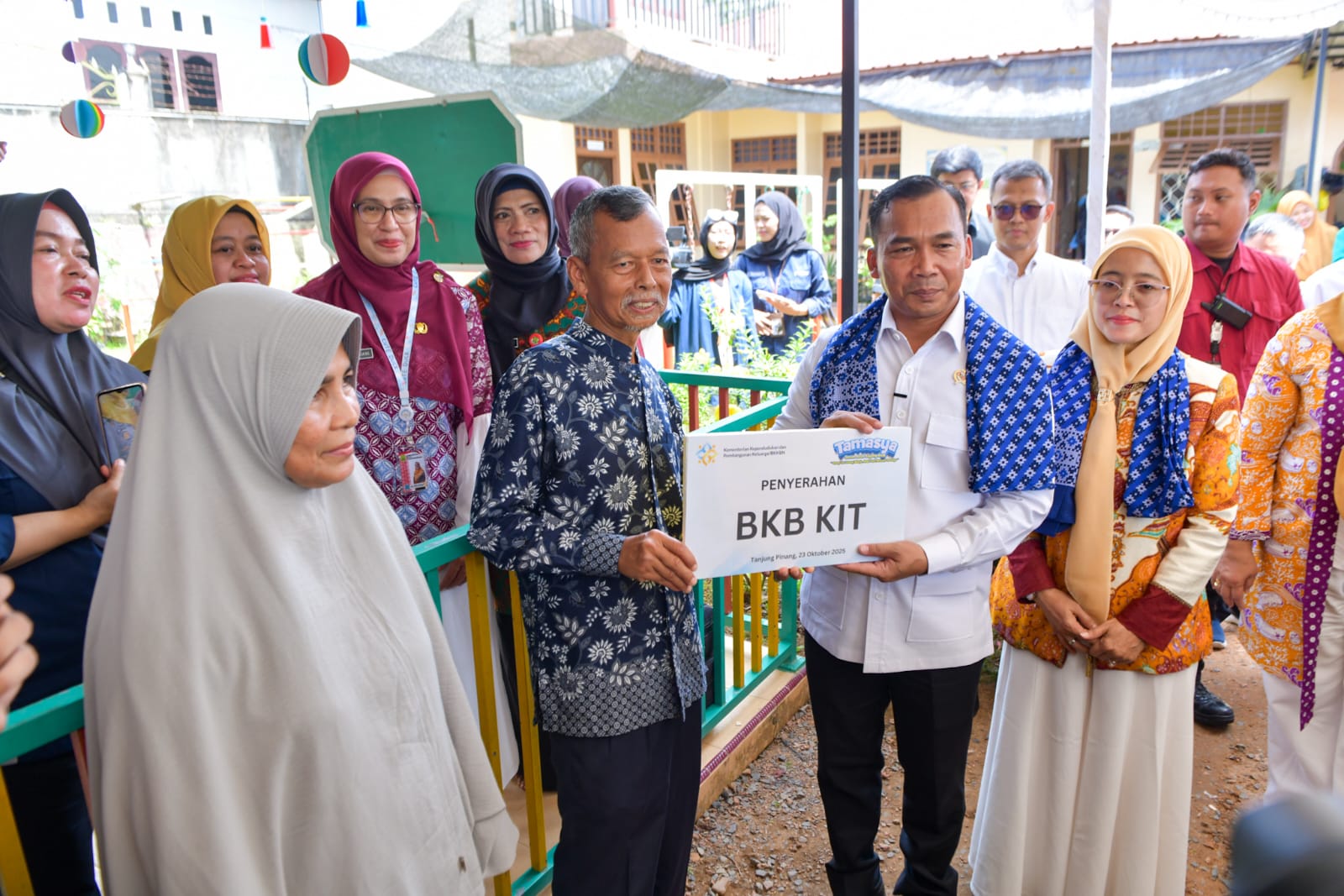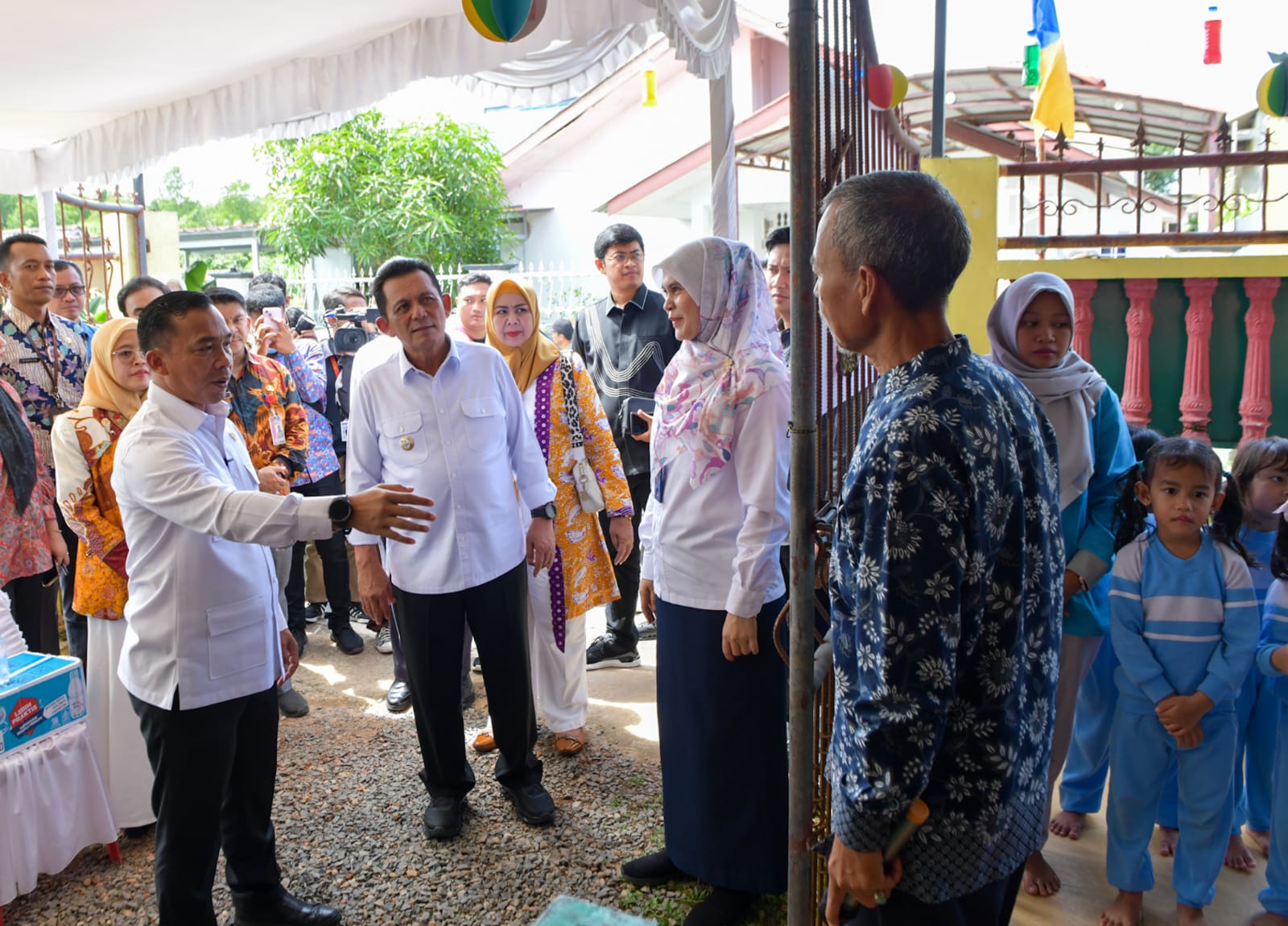 DISKOMINFO KEPRI - Usai meninjau Pelayanan KB di Puskesmas Batu X, Gubernur Kepulauan Riau H. Ansar Ahmad mendampingi Menteri Kependudukan dan Pembangunan Keluarga Republik Indonesia, H. Wihaji, dalam kunjungan kerja ke Taman Asuh Sayang Anak (Tamasya) atau Tempat Penitipan Anak (TPA) Asri yang berlokasi di Jalan Kuantan, Kota Tanjungpinang, Kamis (23/10).