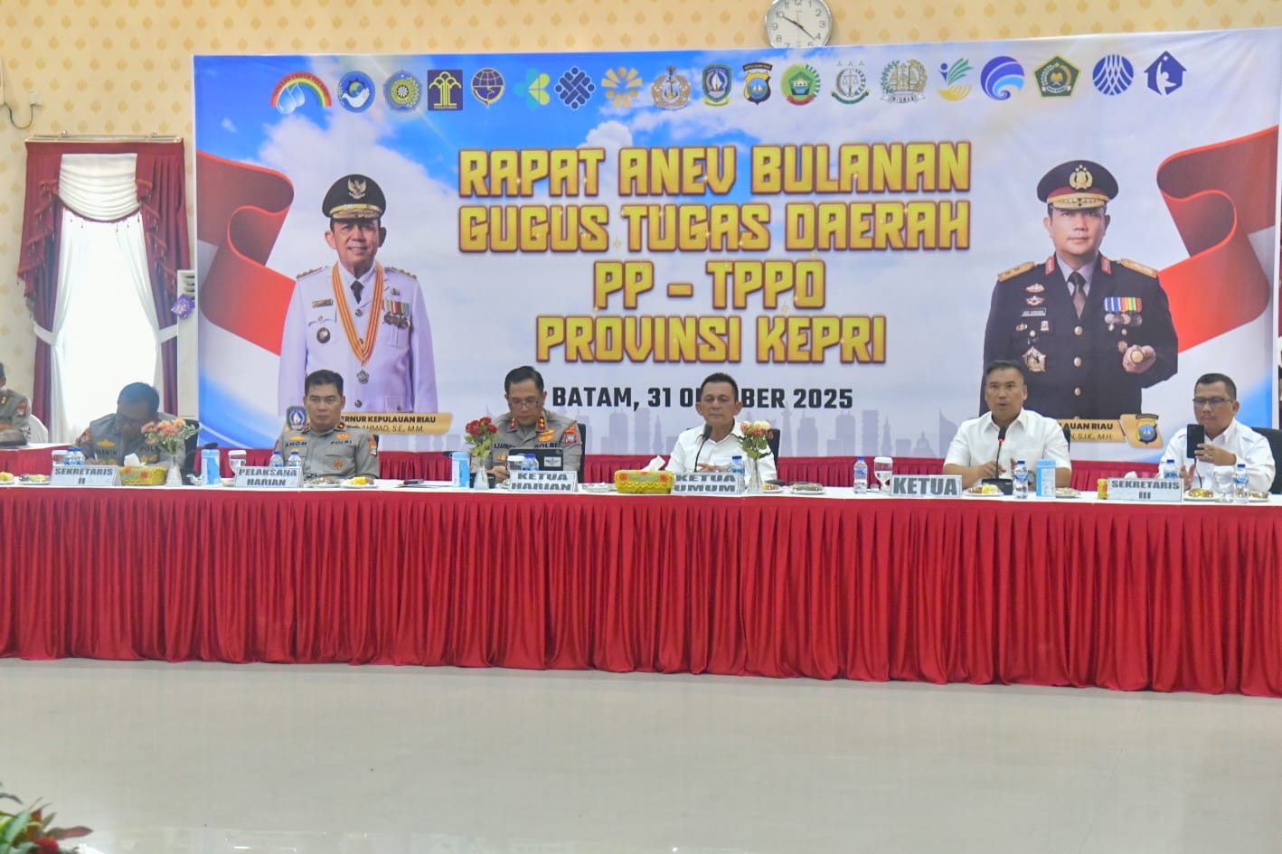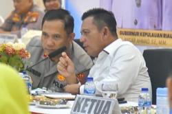 DISKOMINFO KEPRI – Gubernur Kepulauan Riau (Kepri) H. Ansar Ahmad didampingi Wakil Gubernur Kepri Nyanyang Haris Pratamura menghadiri Rapat Evaluasi Bulanan Gugus Tugas Daerah Pencegahan dan Penanganan Tindak Pidana Perdagangan Orang (TPPO) di Gedung Lancang Kuning, Polda Kepri, Jumat (31/10).