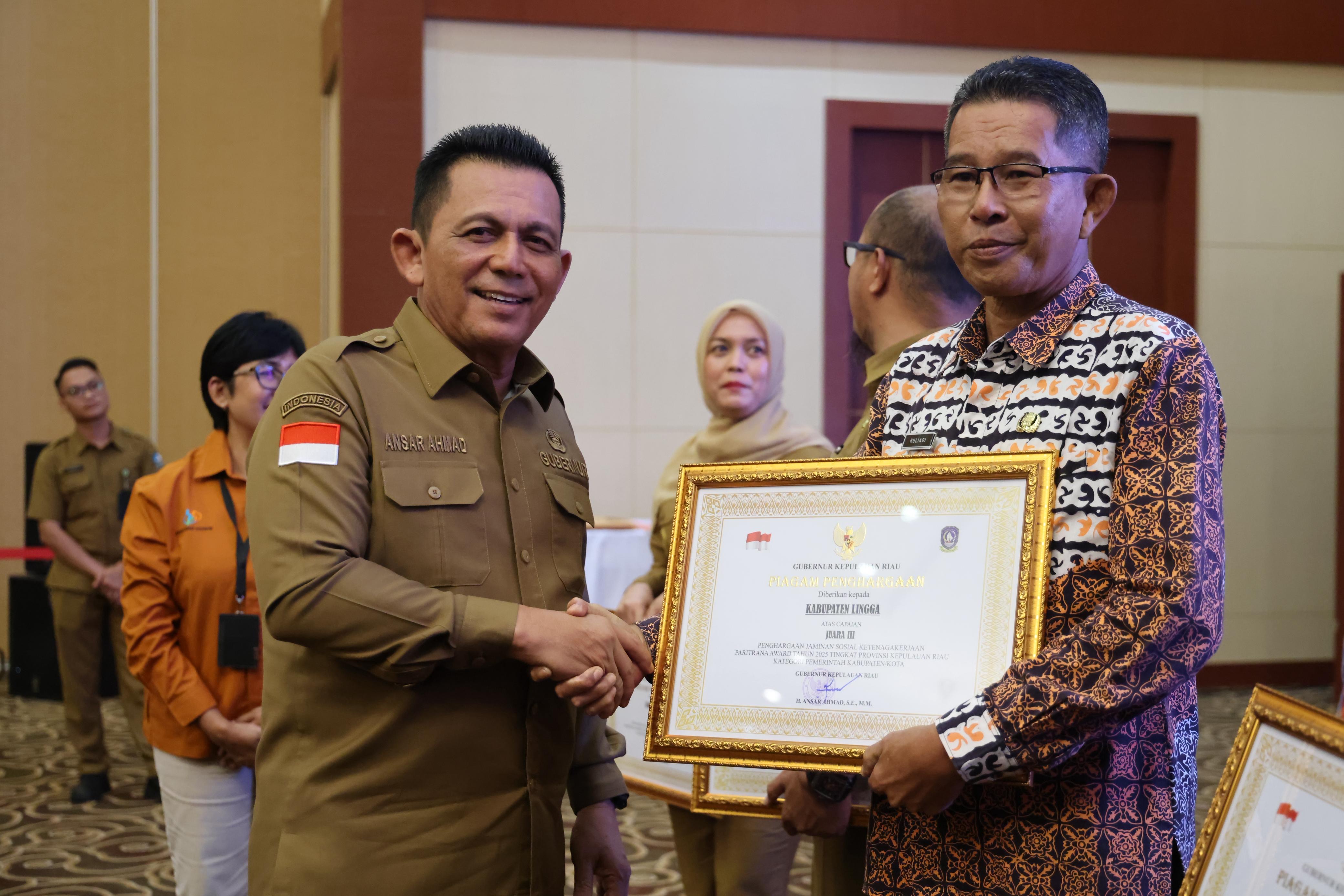 DISKOMINFO KEPRI — Pemerintah Provinsi Kepulauan Riau terus menunjukkan komitmennya dalam memperluas perlindungan sosial bagi tenaga kerja di seluruh wilayah kepulauan. Hal ini ditegaskan oleh Gubernur Kepri Ansar Ahmad, saat menyerahkan Anugerah Paritrana Award 2025 BPJS Ketenagakerjaan tingkat Provinsi Kepulauan Riau, di Aula Wan Seri Beni, Dompak, Senin (3/11).
