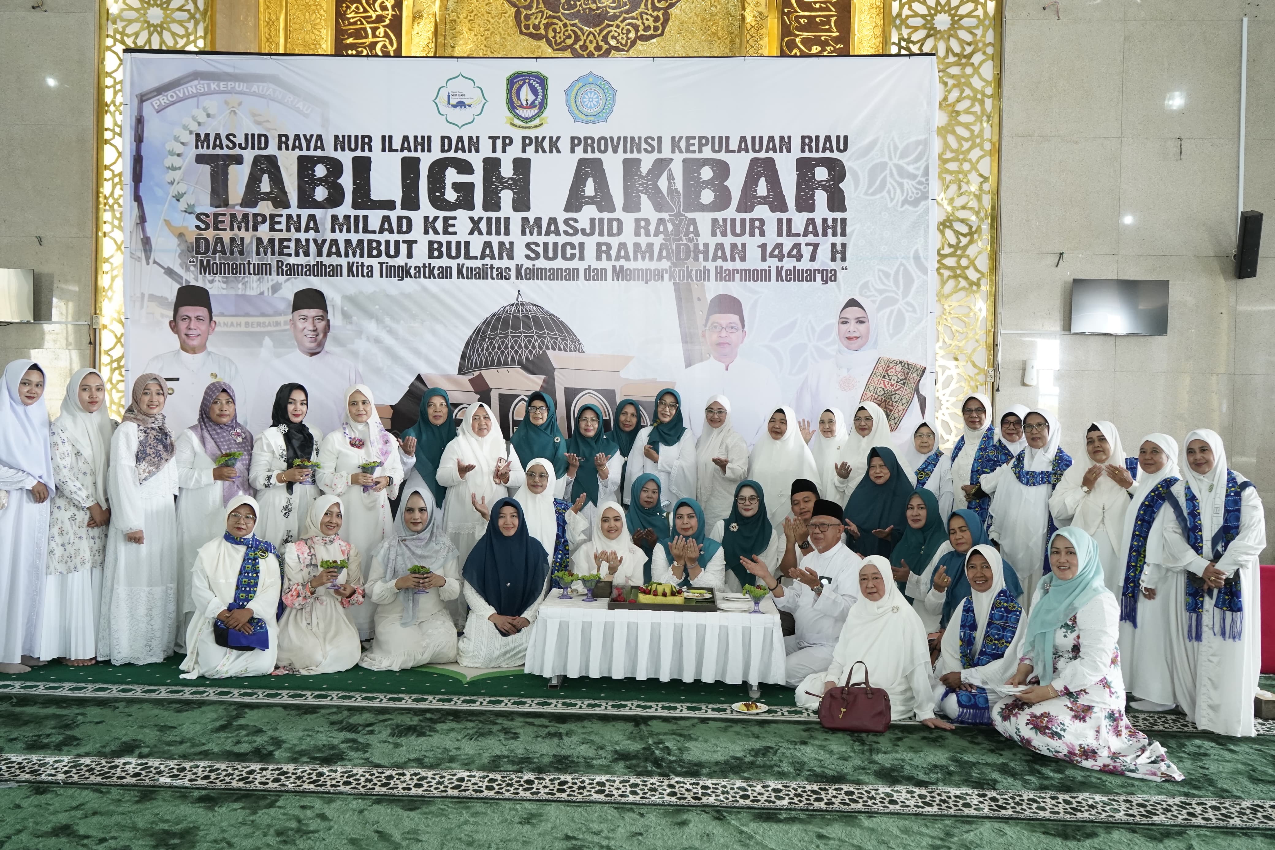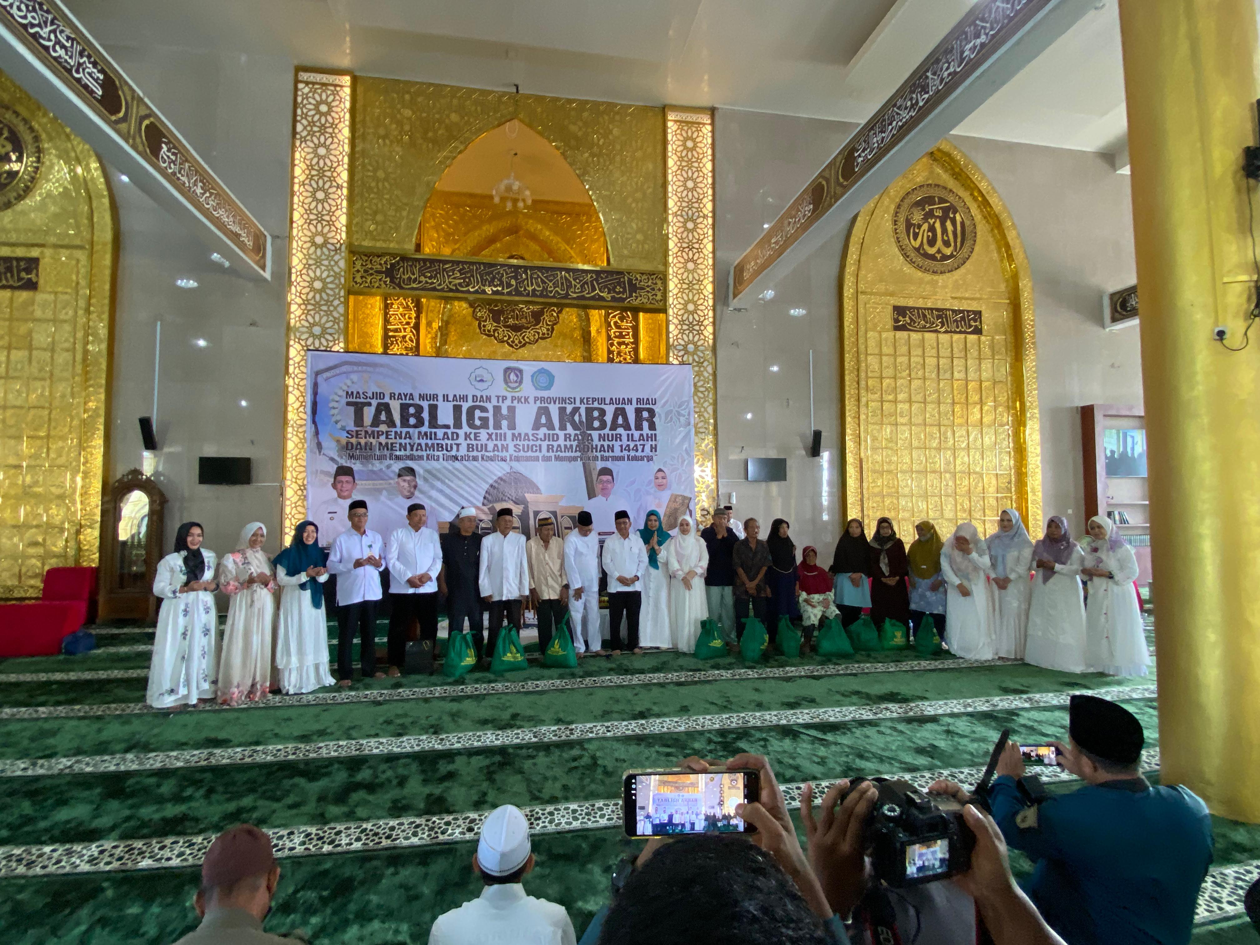 DISKOMINFO KEPRI - Masjid Raya Nur Ilahi Dompak bersama Tim Penggerak PKK Provinsi Kepulauan Riau menggelar Tabligh Akbar dalam rangka menyambut Bulan Suci Ramadhan 1447 Hijriah. Kegiatan ini berlangsung di Masjid Raya Nur Ilahi, Pulau Dompak, Kota Tanjungpinang, Selasa (10/2).