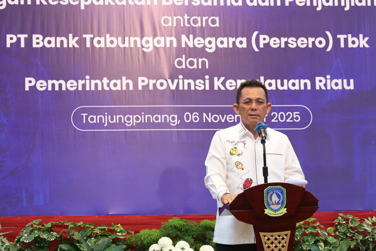 DISKOMINFO KEPRI - Pemerintah Provinsi Kepulauan Riau dan PT Bank Tabungan Negara (Persero) Tbk menjalin kolaborasi strategis untuk membangun ekosistem keuangan daerah yang produktif, inklusif, dan berkelanjutan. Komitmen tersebut ditandai dengan penandatanganan Kesepakatan Bersama dan Perjanjian Kerja Sama di Gedung Daerah Provinsi Kepulauan Riau, Kamis (6/11).