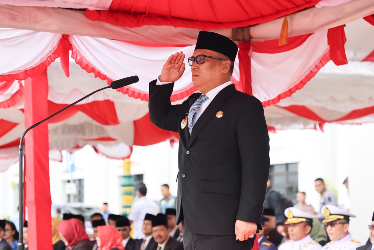 DISKOMINFO KEPRI - Wakil Gubernur Kepulauan Riau, Nyanyang Haris Pratamura, bertindak sebagai Inspektur Upacara pada Upacara Bendera Peringatan Hari Pahlawan ke-80 Tahun 2025, yang disejalankan dengan penyerahan Surat Keputusan (SK) Pengangkatan Pegawai Pemerintah dengan Perjanjian Kerja (PPPK) Paruh Waktu di lingkungan Pemerintah Provinsi Kepulauan Riau.