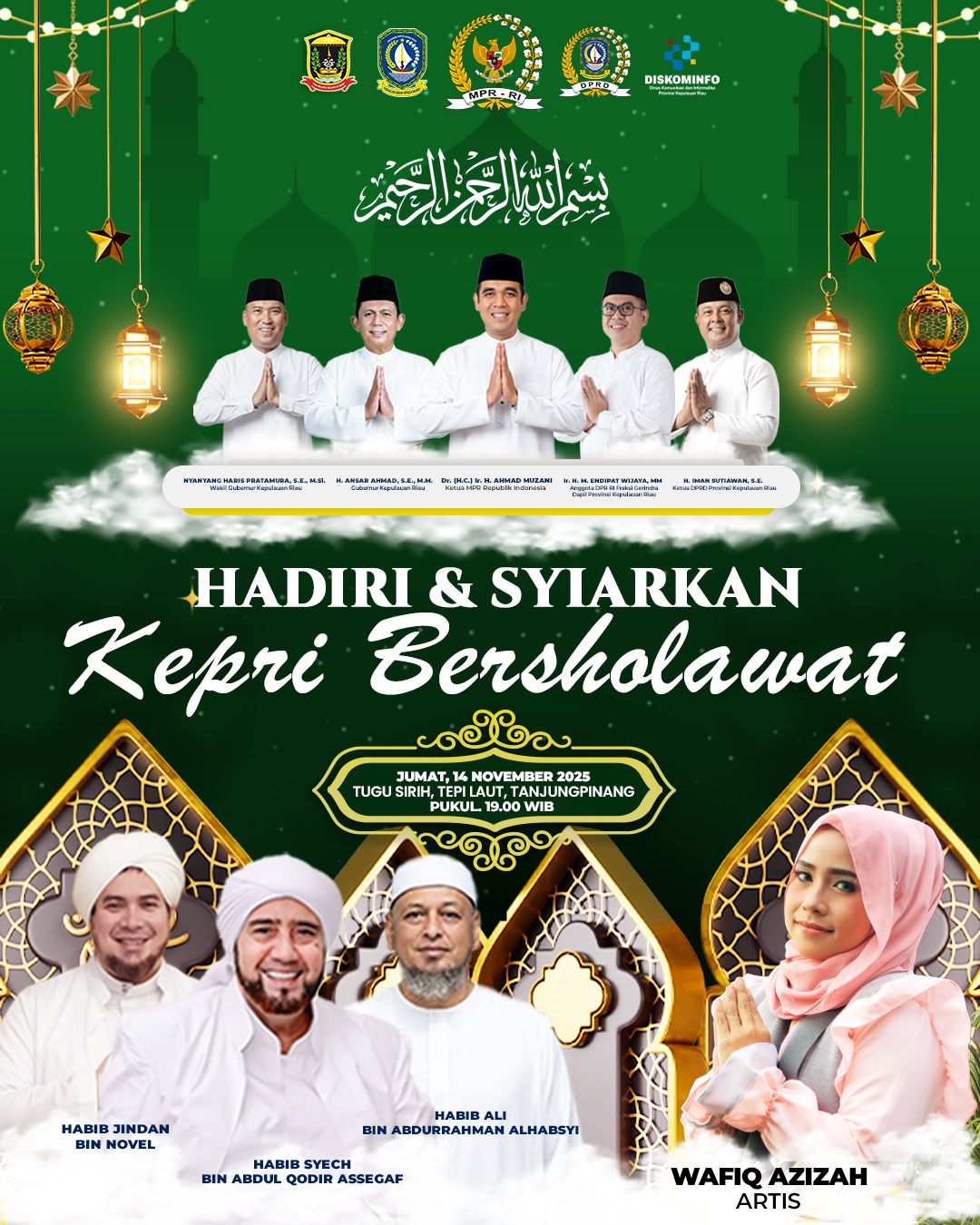 “Insya Allah, dengan kehadiran Habib Syech dan Wafiq Azizah, suasana Kepri Bersholawat akan penuh berkah. Mari kita sambut dengan hati yang gembira dan penuh keikhlasan,” tambahnya.