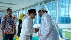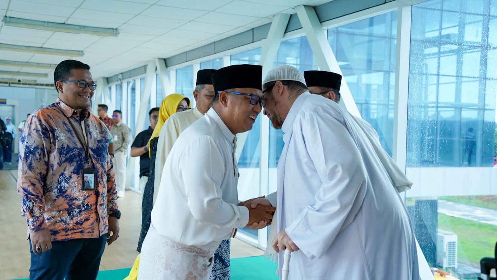 DISKOMINFO KEPRI - Wakil Gubernur Kepulauan Riau Nyanyang Haris Pratamura menyambut kedatangan ulama kharismatik, Habib Jindan bin Novel, di Bandara Raja Haji Fisabilillah (RHF) Tanjungpinang, Jumat (14/11).