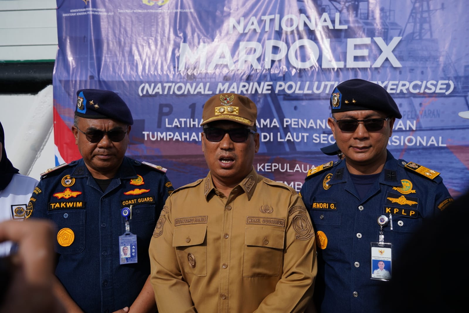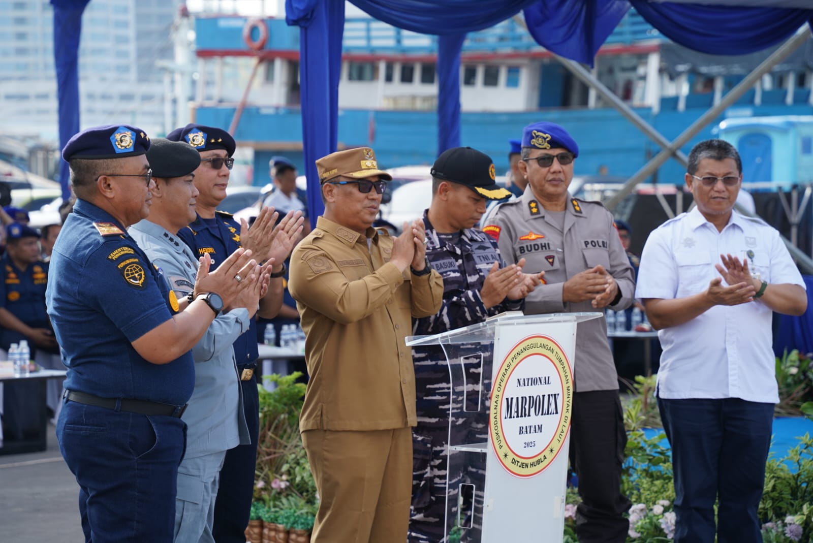 DISKOMINFO KEPRI - Wakil Gubernur Kepri Nyanyang Haris Pratamura menjadi Inspektur Upaacara pada Apel Gelar Pasukan National Marine Pollution Exercise (Marpolex) 2025 yang dilaksanakan di Pelabuhan Bintang 99 Persada Batu Ampar Kota Batam, Selasa (18/11).