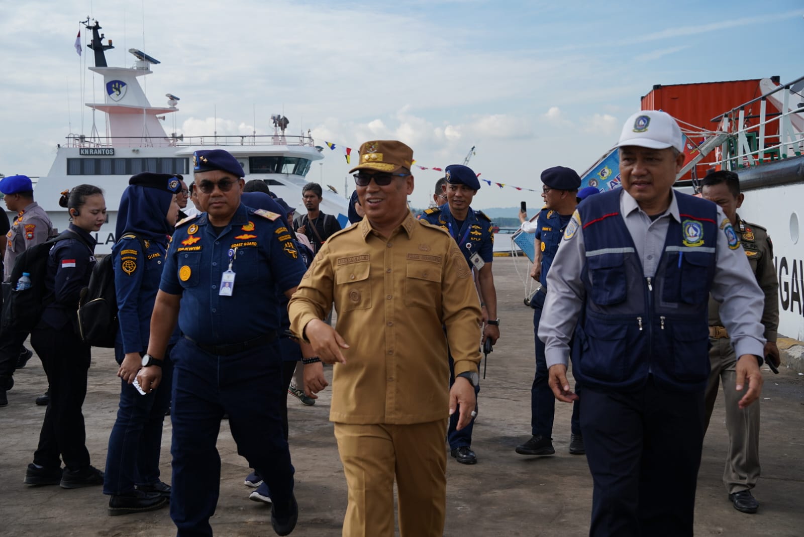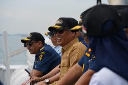 Pada kesempatan tersebut, Wagub Nyanyang bersama pejabat terkait, berkesempatan mengikuti dan melihat langsung simulasi latihan bersama penanggulangan tumpahan minyak laut secara nasional, yang diikuti tidak kurang 500 personil dari berbagai lintas sektor.