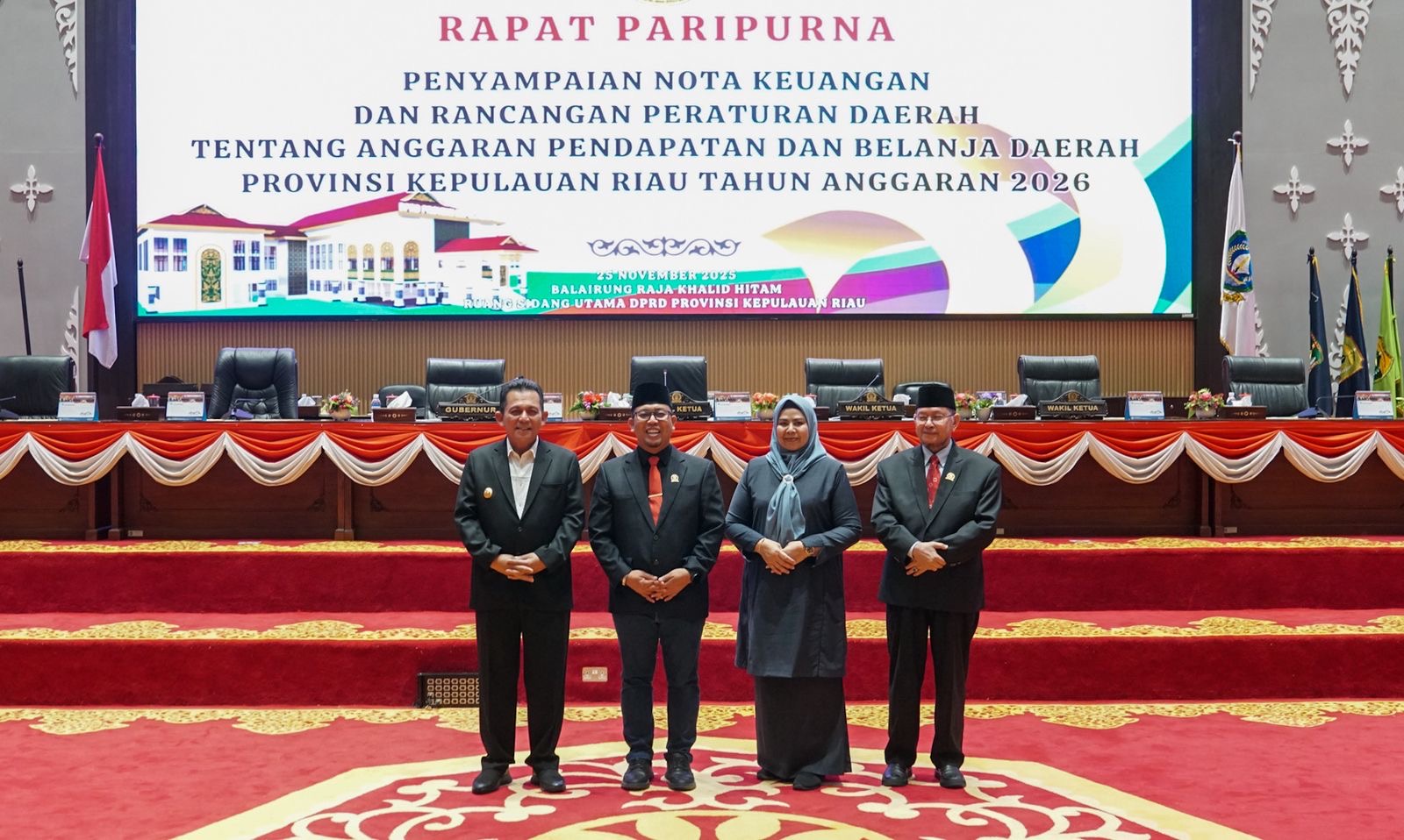 Agenda rapat paripurna kemudian dilanjutkan dengan penyerahan resmi Rancangan Peraturan Daerah tentang APBD Provinsi Kepri Tahun Anggaran 2026 dari Gubernur Kepulauan Riau kepada pimpinan DPRD.