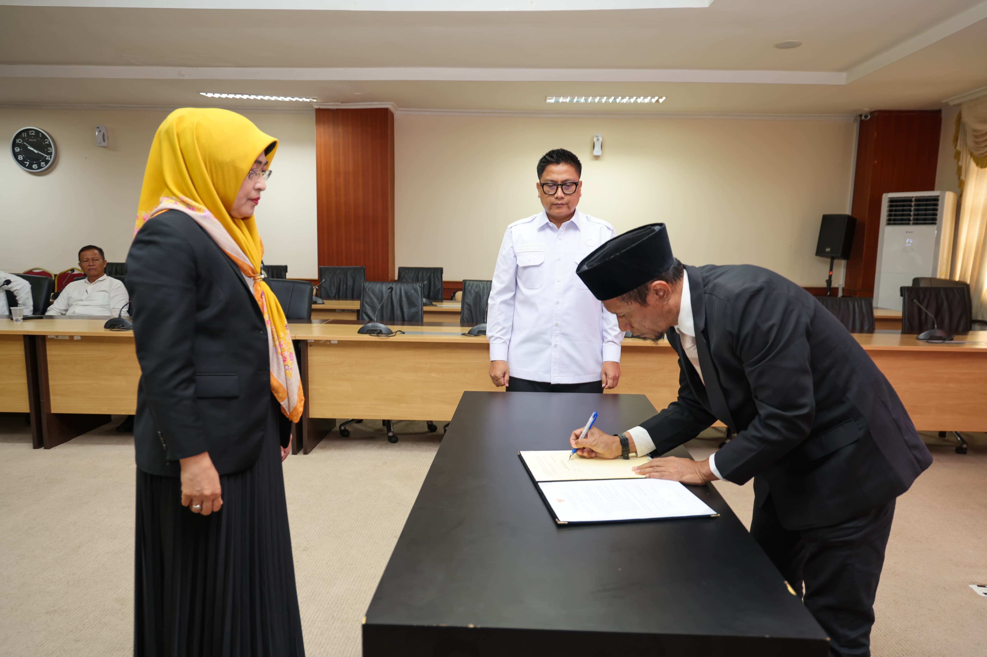 DISKOMINFO KEPRI - Asisten 3 Bidang Administrasi Umum Setda Provinsi Kepulauan Riau Misni, secara resmi melantik dan mengambil sumpah jabatan Tito Suwarno sebagai Komisioner Komisi Penyiaran Indonesia Daerah (KPID) Kepri periode 2025–2028.
