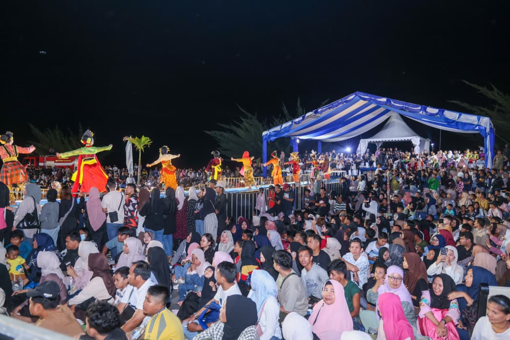 Ribuan masyarakat memadati Pelantar LAM Kepri, Gedung Dekranasda Kepri, hingga kawasan Tuguh Sirih Taman Gurindam 12 untuk menyaksikan malam puncak perhelatan seni budaya internasional tersebut.