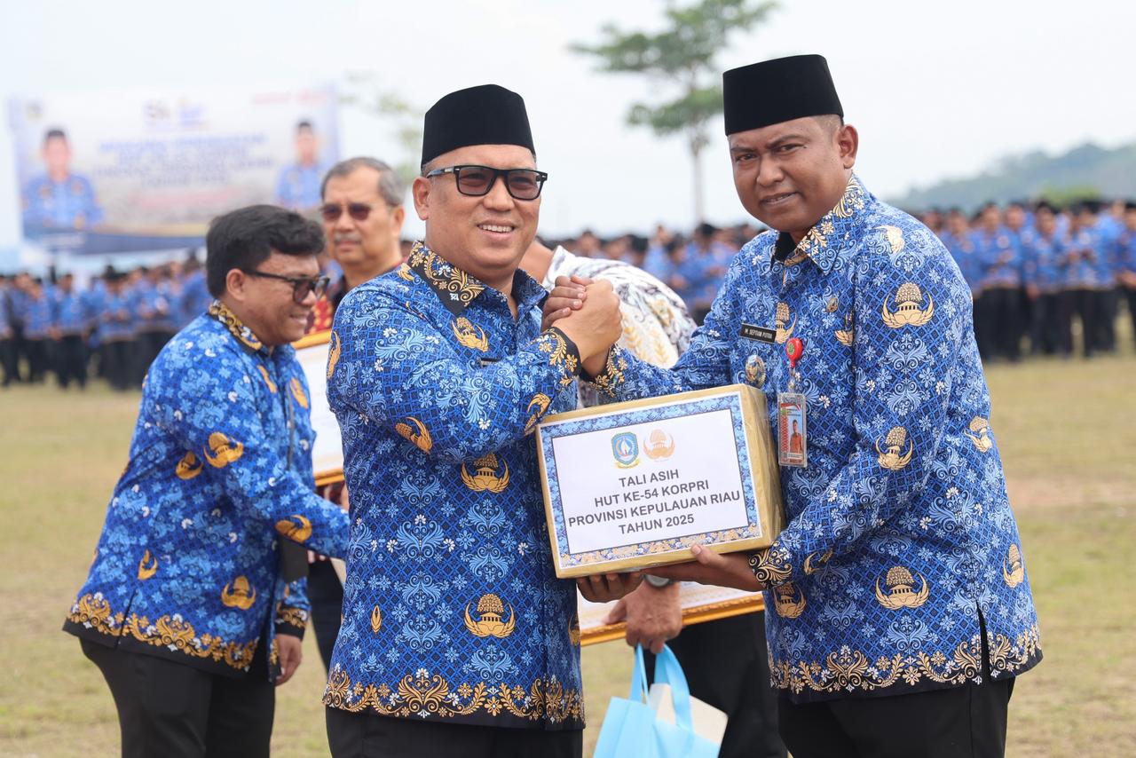 DISKOMINFO KEPRI - Wakil Gubernur Kepulauan Riau, Nyanyang Haris Pratamura, bertindak sebagai Inspektur Upacara pada peringatan Hari Ulang Tahun ke-54 Korps Pegawai Republik Indonesia (KORPRI) Tahun 2025 yang digelar di Halaman Kantor Gubernur Kepri, Dompak, Senin (1/12).