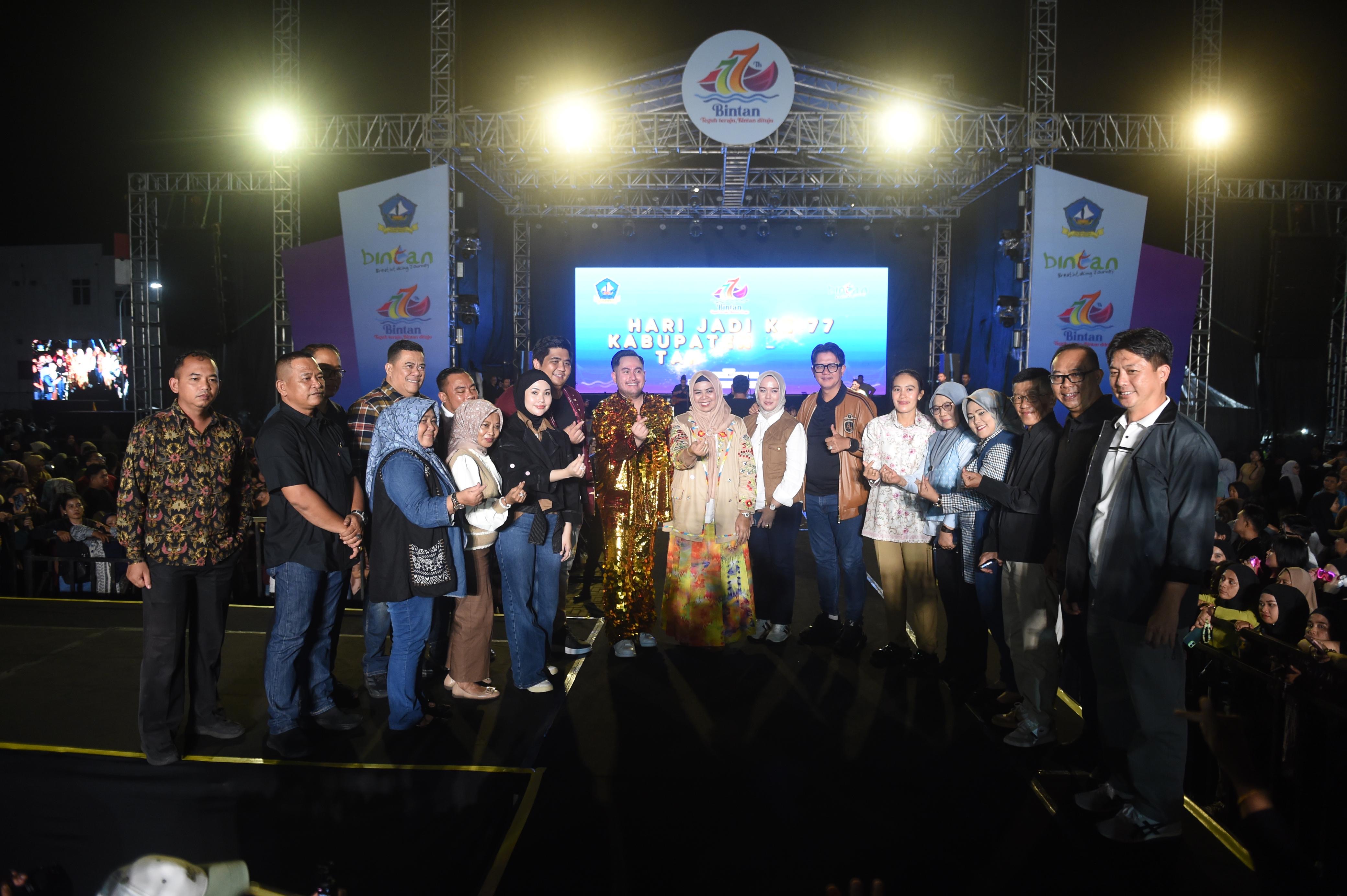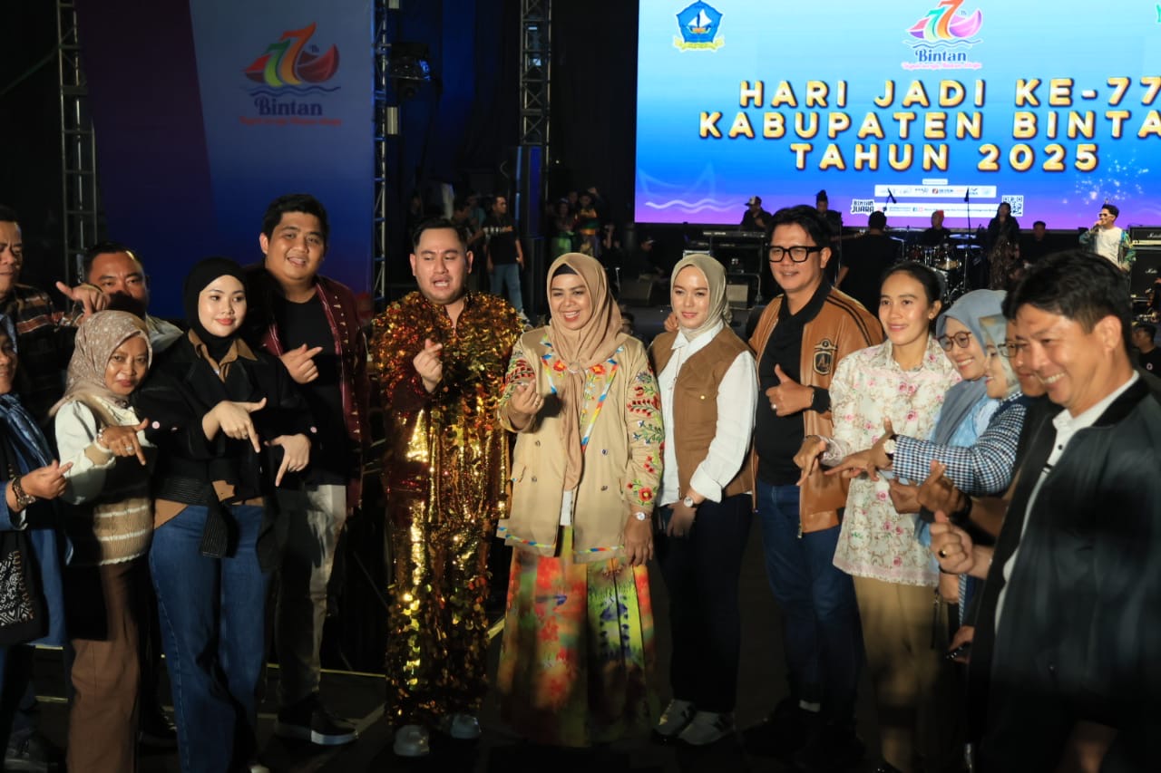 DISKOMINFO KEPRI - Malam Puncak Peringatan Hari Jadi ke-77 Kabupaten Bintan Tahun 2025 berlangsung meriah di Pelataran Sevenland Food Court, Tanjung Uban, Kabupaten Bintan, Selasa (2/12).
