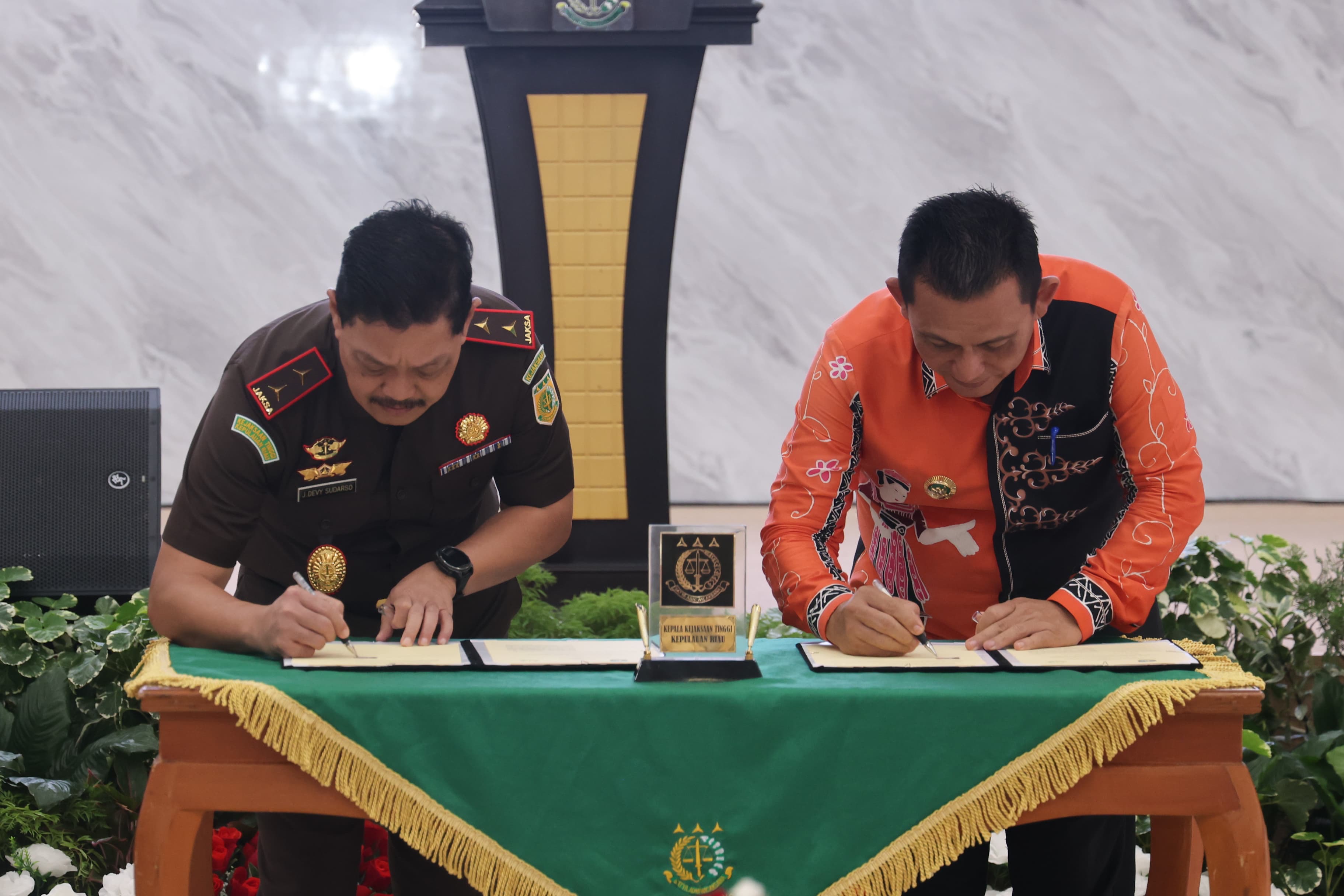 Penandatanganan dilakukan oleh Kajati Kepri J. Devy Sudarso dan Gubernur Kepulauan Riau H. Ansar Ahmad, serta turut disaksikan langsung oleh Direktur C pada Jaksa Agung Muda Bidang Tindak Pidana Umum, Agung Soenanto. Ia hadir memastikan seluruh jajaran di daerah siap melaksanakan implementasi KUHP baru, terutama pidana pokok berupa pidana kerja sosial sesuai amanat Undang-Undang No. 1 Tahun 2023 tentang Kitab Undang-Undang Hukum Pidana.