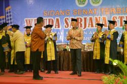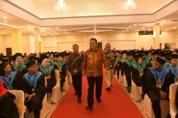 “Wisuda bukan akhir, tetapi pintu menuju dunia pengabdian. Bawalah ilmu kalian dengan sikap rendah hati, gunakan kreativitas, inovasi, dan integritas sebagai bekal memasuki dunia kerja dan masyarakat,” pesannya.