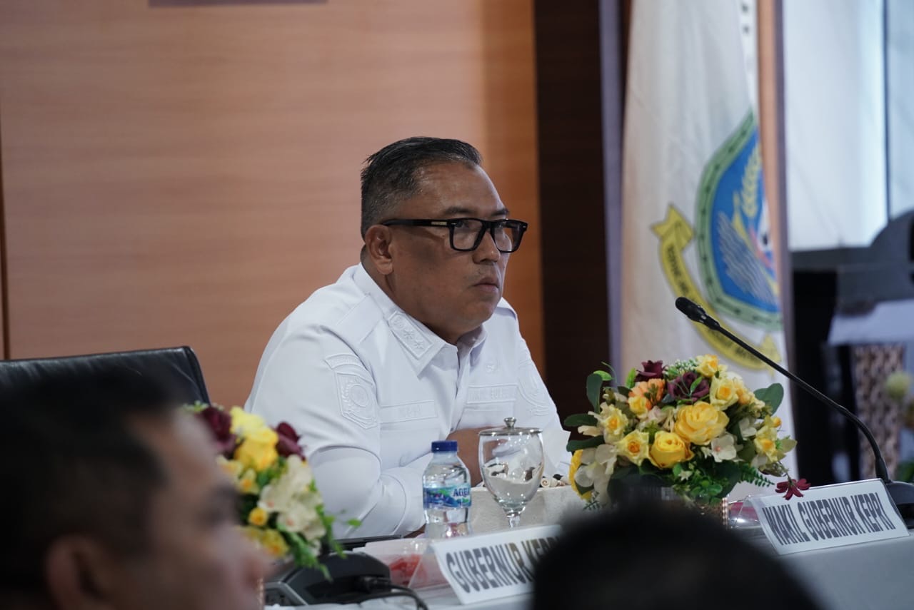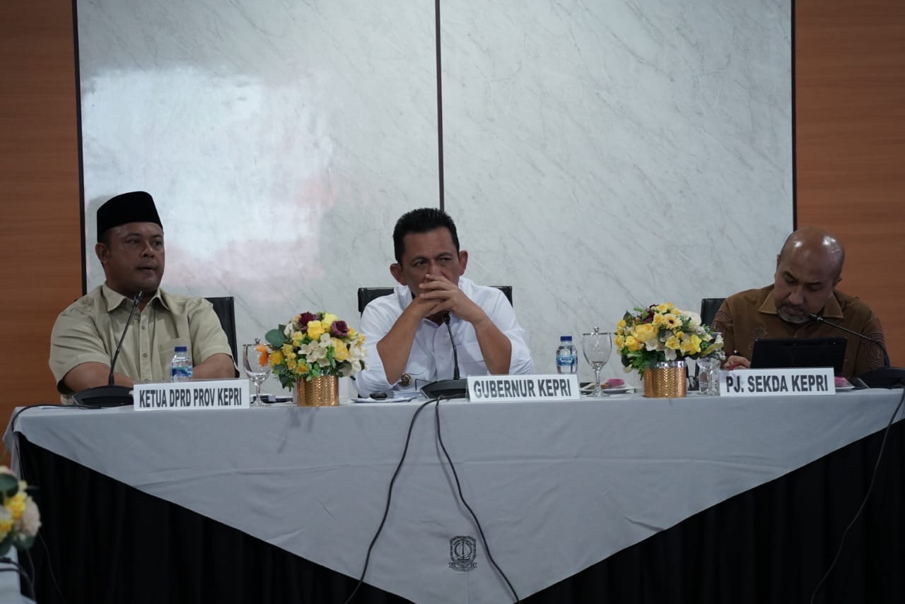 DISKOMINFO KEPRI - Gubernur Kepulauan Riau Ansar Ahmad, didampingi Wakil Gubernur Kepri Nyanyang Haris Pratamura dan Ketua DPRD Kepri Iman Setiawan, memimpin Rapat Koordinasi Forkompinda Provinsi Kepri dan Rakor Pemerintah Daerah Kabupaten/Kota se-Provinsi Kepri yang berlangsung di Gedung Graha Kepri, Batam Centre, Senin (8/12).