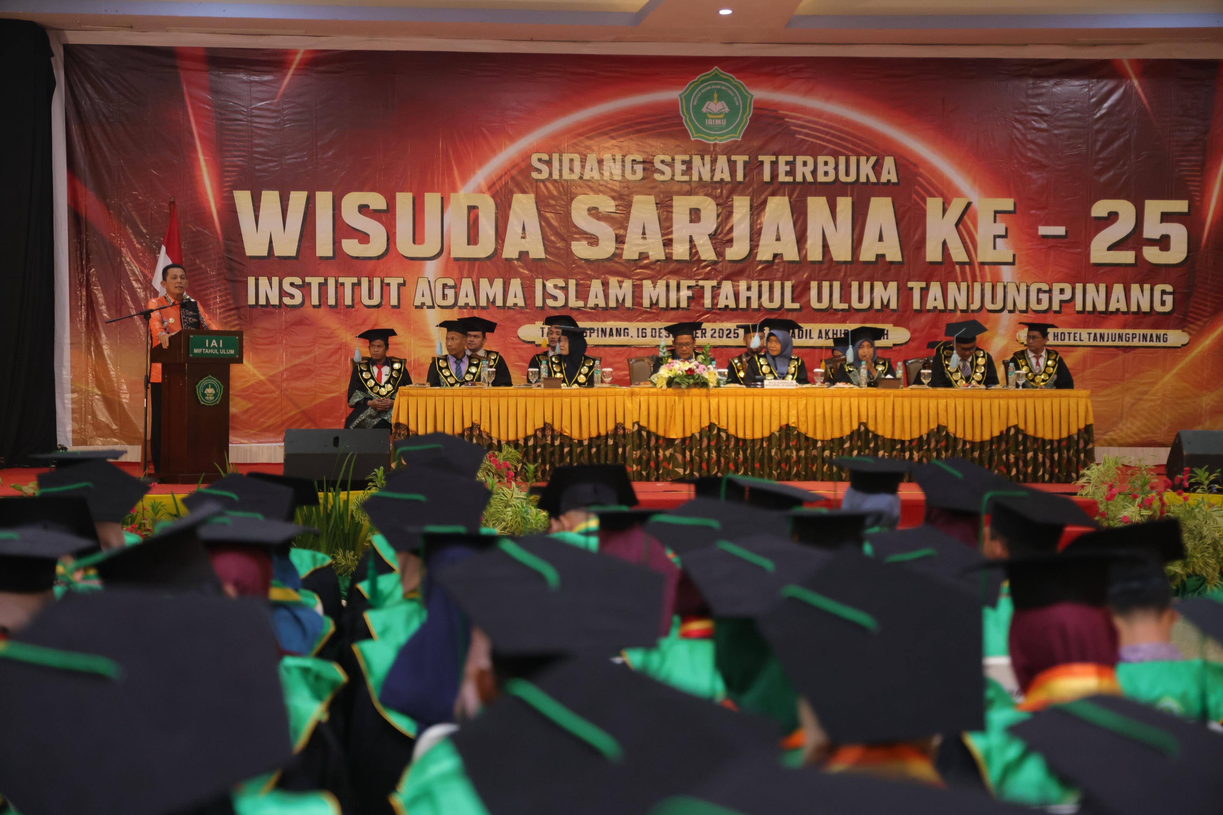 Dalam laporan akademiknya, Rektor IAI Miftahul Ulum Tanjungpinang, Hj. Mardhiah, menyampaikan rasa syukur dan kebanggaan atas terselenggaranya wisuda ke-25 ini. Ia menegaskan bahwa para lulusan telah melewati perjalanan akademik yang penuh tantangan dan pembelajaran, serta dipersiapkan untuk menjadi generasi unggul yang berilmu, berakhlak, dan berkontribusi bagi masyarakat, bangsa, dan negara.