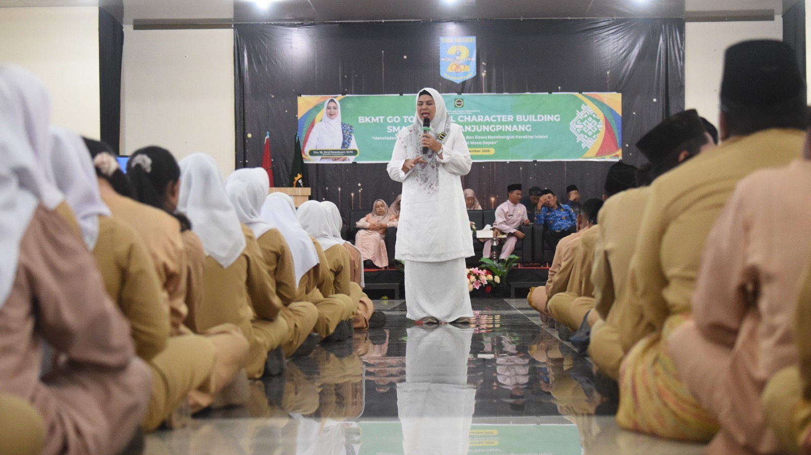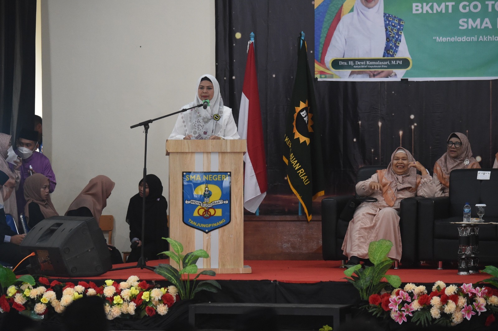 DISKOMINFO KEPRI – Ketua Umum Badan Kontak Majelis Taklim (BKMT) Provinsi Kepulauan Riau, Hj. Dewi Kumalasari Ansar Ahmad, menghadiri kegiatan BKMT Go to School Character Building yang digelar di SMA Negeri 2 Tanjungpinang, Jumat (19/12).