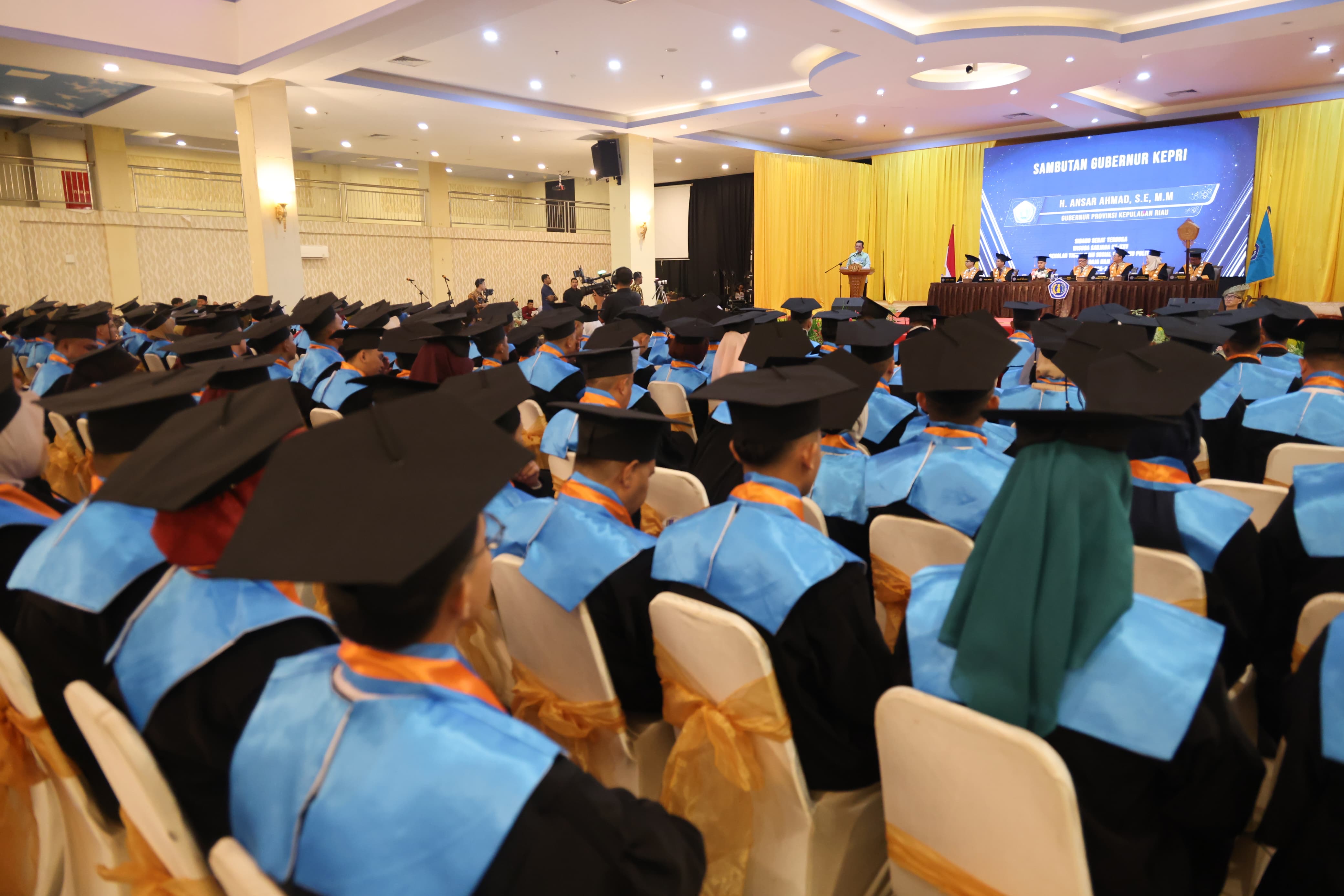 DISKOMINFO KEPRI - Gubernur Kepulauan Riau H. Ansar Ahmad menghadiri Sidang Senat Terbuka Sekolah Tinggi Ilmu Sosial dan Ilmu Politik (STISIPOL) Raja Haji Tanjungpinang dalam rangka Wisuda Tahun Akademik 2025 yang digelar di Mega Ballroom CK Hotel Tanjungpinang, Sabtu (20/12).